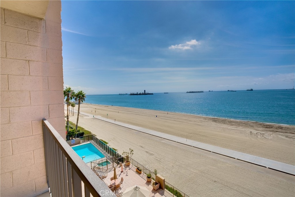 Captivating Ocean Views! Gaze at the ocean for hours from this upgraded oceanfront 15th floor condo! Work from home in your own piece of paradise or have an easy commute to Los Angeles and Orange County. This light filled home features floor to ceiling windows, laminate flooring, and central heat and air. Parking is an ease with a prime spot in the parking garage with storage cubbies. HOA fee includes high speed internet, wifi, cable TV, water, partial earthquake insurance, and 24/7 maintenance staff. Imagine sipping your favorite beverage from the sun deck after spending time in the jacuzzi or sauna. Feel gentle breezes in the heated saltwater pool that has an ocean view. Direct access to the beach and bike path, and the sunrises and sunsets are impeccable from the sandy beach or from your spacious living room. Reserve the oceanfront community room for larger gatherings and use the updated kitchen, pool table, ping pong table and gym at your convenience. Belmont Shore, Pine Street, Shoreline Village, Farmers Market, LB Museum of Art and Yoga on the Bluff are all nearby.