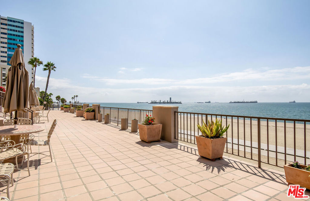 Imagine waking up every morning to the calming sound of ocean waves, glistening views of tranquil blue water, sand, tiny islands, cool ocean breezes and beautiful panoramic sunrises! This is truly the best Long Beach has to offer. A world unto itself away from the hustle and bustle yet central to everything. This ocean zen meets California beach chic One Bedroom One Bath Fully Upgraded Designer Condominium in the Queens Surf Tower has floor to ceiling windows for unobstructed views the moment you walk into the unit. One of the larger floor plans in the building, the unit comes with a gourmet kitchen with espresso cabinets, all stainless appliances, plenty of storage, Caesarstone countertops, Ann Sachs tile backsplash, and an open view to the sand and ocean. Spacious living area with incredible views, electric retractable shades and an original hanging Nelson lamp. Nice patio overlooking the pool for outdoor lounging, dining, catching the gorgeous sunsets or maintaining a small garden. Central Air and Heat, designer layout ceramic tile floor, frosted glass interior doors with modern Italian hardware, and custom frosted glass closet shoji doors throughout. Long entry hallway perfect for displaying an art collection. Fabulous designer spa bathroom w/ Walker Zanger designer carrara tiled walk in shower with center motif, built in bench, glass walls & rain shower, contemporary floating wood vanity and extra wood storage cabinet and designer sconces. Spacious QUIET private bedroom has designer textured carpet, original Silk Company pen striped silk drapes, modern ceiling fan and two closets.Building has a pool you can swim laps in, jacuzzi, sauna, clubhouse for group entertaining with ocean view from kitchen as well as the gym. Also direct beach access to the boardwalk off pool level for jogging or strolling along the beach as well as a private open area viewing deck above pool with tables and chairs perfect for an afternoon lunch over the ocean with some of the best harbor and Queen Mary! Centrally located in the SF of SoCal, its walking distance to the Long Beach Museum of Art + Claire's at The Museum, Bluff Park, The Rainbow Lagoon, Shoreline Village, The Pike Entertainment Complex, Pine Ave, East Village Arts District, Broadway Corridor, The Promenade, Art Theatre, Belmont Shore, Yoga on the Bluff, Beach Walk/Bike Path and More. Truly a rare opportunity to own ocean front in Southern California. Won't last.