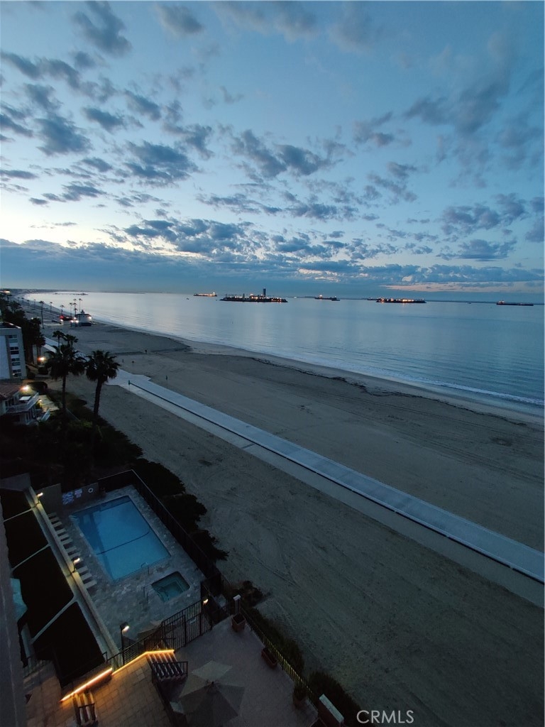 Unobstructed white water ocean views. Fall asleep to the sound of the waves, breathe in the fresh ocean air, and observe the peaceful sunrise/sunset in this cozy Beach Home. It is ideally located in between Downtown and Belmont Shore. Just high enough to enjoy the activities on the beach path while giving you enough privacy to completely relax and unwind. Walk down to access the ocean view, pool, gym, spa, sundeck, and clubhouse. This turnkey property is available fully furnished, including 2 TVs, a 3-room surround sounds system by Sonos, and all other accessories. The building is monitored 24/7 with security cameras. Includes dedicated parking, storage, and guest parking is available. HOA dues cover cable TV, water, and trash. Walk score approximately 4.6.