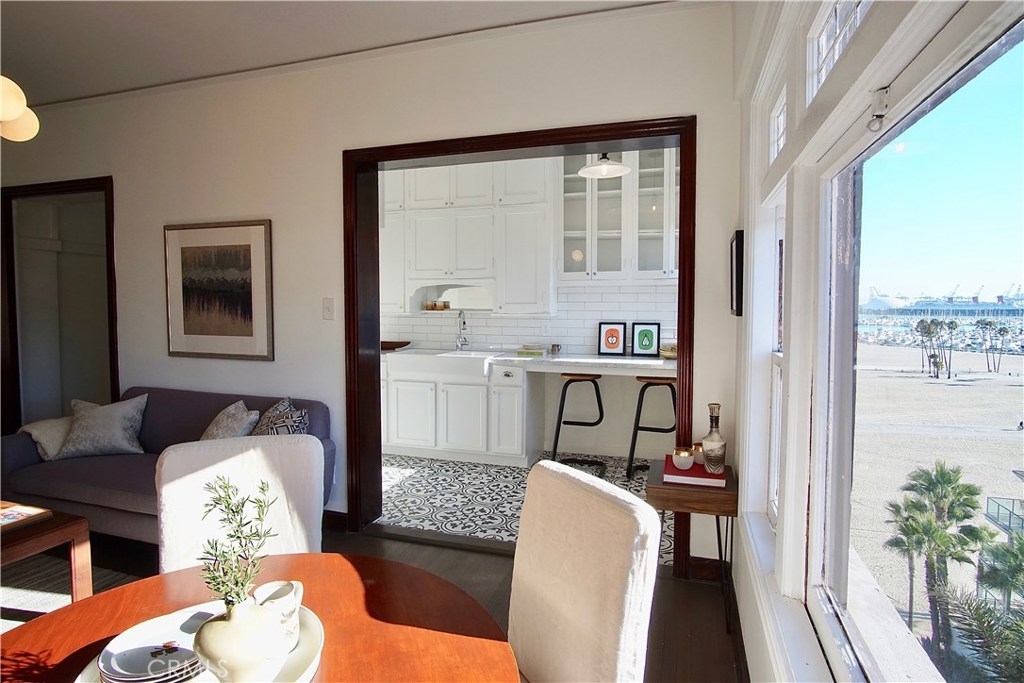 Welcome to this Ocean front Condo building!!! Peek-a-boo Harbor, Queen Mary and Ocean View from your bedroom, Living Room and Kithcen!! Located in the Historic St.Regis Building built in 1922 right on the sand! This fabulous unit features a remodeled bathroom, updated kitchen restoring original cabinets from the 1920s with new counter-tops and range, custom fixtures, restored original hardwood flooring from the 1920s, restored original doors, trim and fireplace from the 1920s and the list goes on! Move-in ready just in time for Spring and Summer! The property features direct beach access through the community ocean view patio down the stairs, through the sand level community patio and right onto the sand! Perfectly located biking or walking distance to downtown, the Pike, Alamitos beach boardwalk, and 2nd St. The building HOA includes all utilities, provides bike storage, unit storage and a large community laundry room.