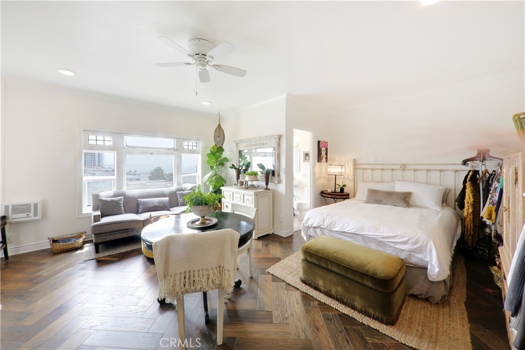VIEW, VIEW, VIEW !!! High atop the 7th floor, of the Historic St. Regis Building in Downtown Long Beach, come and discover your own beach side penthouse. This tastefully decorated Studio Condo boasts a multitude of appealing characteristics.. The gorgeous Herringbone Hardwood Floors, Newer Cabinets with Quartz Counter Tops, Stainless Steel Appliances and Classic Subway Tiles in the shower, just to name a few. Crown Moldings, Beautiful Light Fixtures and tons of Natural Light further accent this relaxing abode. But what you will remember most about unit 707, will be the Stunning Views..... Both City and Ocean Views are absolutely breathtaking. Ocean Views are hard to come by, but you can enjoy yours from every window of this charming home. Continue to enjoy the Beach and Ocean views from the Community Patio, where the Beach is literally your back yard. There is nothing quite like an ocean breeze. This Vintage Building is perfectly located. Just a short, pleasant walk to Shoreline Village, The Pike and Pine Ave Restaurants. Other local attractions include The Aquarium of the Pacific and The Queen Mary. Don't miss your opportunity to live on the beach. As an additional benefit, the current HOA dues of $266 per month include utilities ( gas and light). Grab your sun glasses and flip flops, and come embrace the beach living lifestyle.