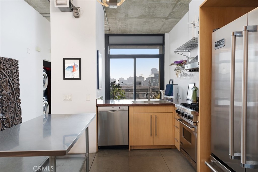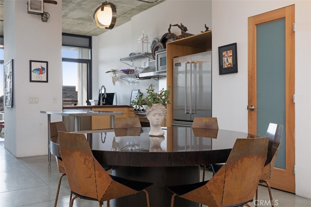 Welcome home to this south tower top floor unit at the historic Temple Lofts! Light and bright living room, open floorplan, polished concrete floors and soaring ceilings are just a few of the incredible features of this chic loft. Open kitchen with granite countertops, stainless steel Viking appliances and breakfast counter. The dining nook provides an informal dining area or can be doubled as an office space. Dual vanities in the bathroom and two separate showers creates a cozy primary suite experience. The walk through closet provides an abundance of storage for convenience and clever organization. The south facing patio and floor to ceiling windows make this one of a kind unit boasting expansive city views of the downtown Long Beach skyline and harbor. This unit not only has it's own private storage space in the basement, it also has two parking spaces! This fabulous community features onsite maintenance, a fitness center, secured guest parking, a community jacuzzi, community outdoor lounge with built in BBQs, a fire pit and outdoor seating.