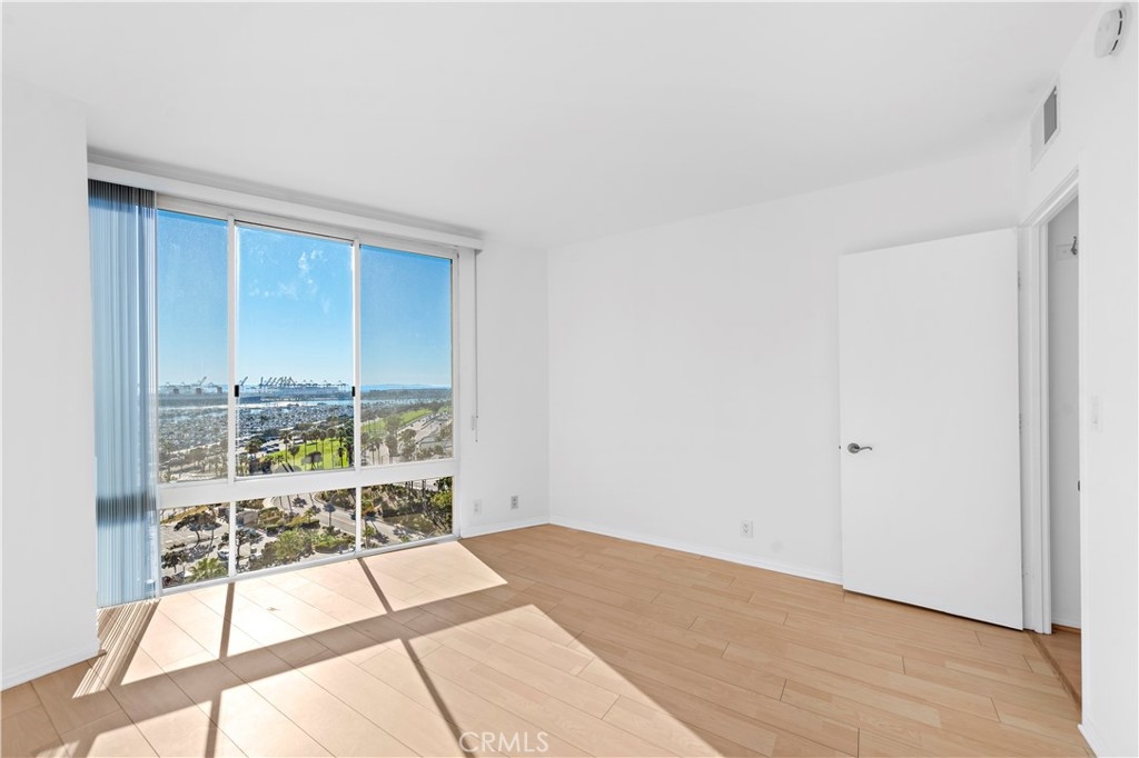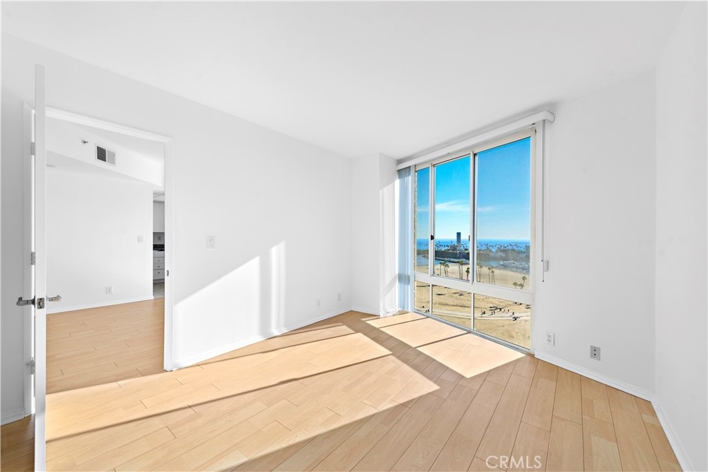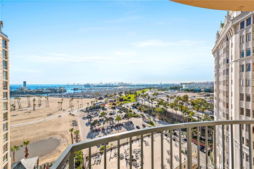Beach Front Luxury High Rise 10th floor condominium with panoramic ocean, beach, Marina and Queen Mary views from all over this 1 Bedroom 1 Bath unit. Voluminous high ceilings and a stretched floor plan offers separated living and dining spaces plus a large sun-drenched balcony to enjoy the Pacific ocean views. The updated kitchen features newer stainless steel appliances with included stackable washer/dryer. The bedroom also features similar views, a large walk in closet and an ensuite full bath with tub and shower. The Pacific at 850 E Ocean offers the feel of a 5-star hotel, 24/7 front desk and yet the comfort of a private home. Luxury Lobby provides residents with an impressive entry to the building common areas. Easy access to the gym, oversized pool and spa, outdoor BBQ areas cleaned by staff daily, fire pit, common area kitchen and oversized banquet room. Onsite management, 3 full time engineers and 2 full time common area janitors provide each resident with the personal service they deserve. 2 bicycle storage rooms with direct access to the beach club, beach jogging/walking and bike paths. Walking distance to downtown, marina, Shoreline Village, restaurants, theaters, shopping, Blue Line Metro and City Buses. This luxury condominium is an impressive primary home or a fabulous 2nd vacation beach house.