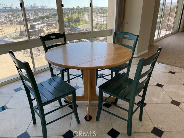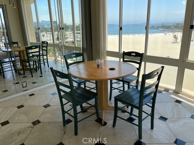 Panoramic front on ocean views of the Beach, Marina and Queen Mary. Updated Gourmet kitchen features newer appliances and cabinets, granite countertops and Sub Zero refrigerator. Kitchen looks out to the Dining Area/Living Room and has been remodeled and opened up to reflect even more ocean view. Decorative light fixtures and floor to ceiling mirror in the living room. Master Bathroom includes newer bathtub and commode, separate glassed-in shower with marble surrounds and dual sinks. Walk-in closet, marble floors, A.C., Balcony, direct beach access and Ocean views from every room.