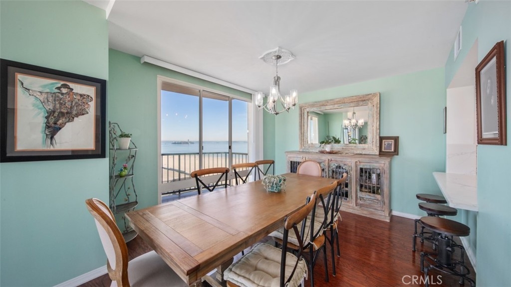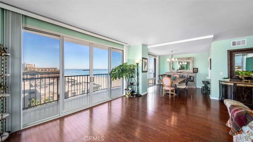 Luxurious ocean-front condo with views of the ocean shoreline by day and city lights by night. This beautiful, rare corner unit has 2 beds and 2 baths, 1,593 square feet with1 balcony of the bedroom with city views, and a second balcony which is double in size is off the living room and dining room area. This unit is unique with an extra-large living area for entertaining. Located in the Pacific Condominium near downtown Long Beach offers resort-style living and direct beach access. The home has hardwood flooring and tile flooring throughout, upgraded kitchen with quartz countertops, custom cabinetry, subzero refrigerator, Miele washer and dryer, new stove stop range, recessed lighting, 2 secure underground side-by-side parking spaces, with 4 storage units. The Pacific Condo offers 24-hour concierge service and security, on-site management and engineering staff, key card access to all common area floors, eloquent lobby and reception, newly remodeled library, fitness center, heated pool and spa, outdoor lounge with BBQ overlooking the beach, and marina. Pets are allowed. Walk directly out onto the beach for a nice stroll or walk to Shoreline Village with lots of entertainment and Restaurant row. Luxury living at its best. HOA includes: water, trash, internet, and earthquake insurance