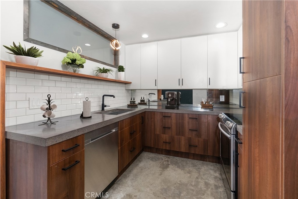 Back on market through no fault of the Sellers- See private notes. Now's your chance! Experience the perfect blend of style and efficiency in this newly remodeled 2-bedroom, 1 bathroom condo; an impressive, trendy industrial loft-style living space • Nestled in the heart of downtown Long Beach, this property offers breathtaking ocean and city views, complemented by stunning sunsets and an illuminated city skyline • Concrete floors and exposed beams infuse the space with an urban vibe, while a new electrical sub-panel and all-new wiring ensure modern functionality • Wool/blow-in insulation throughout provides a tranquil, energy-efficient environment that is virtually soundproof • The fully custom kitchen is a chef's dream with toe kick drawers, 42” tall upper cabinets, full-sized stainless-steel appliances, and exquisite concrete countertops • For the health-conscious, the kitchen sink comes equipped with a hot and cold-water filtration system • The residence also features a custom-designed 3-zone mini-split air conditioning system for optimal comfort in every zone • Accessibility is key, with thoughtful ADA compliant access included throughout • The expansive tinted windows not only protect your privacy but also frame the stunning Long Beach sunsets and skyline • Laundry is a breeze with a full-size in-unit washer and dryer. (one of the few in the building) • Techies will appreciate the TV and computer niche that's hardwired with Cat 5 cable for unparalleled connectivity; a perfect workstation • This unique and stylish loft is not just a home; it's a lifestyle choice for those seeking the best in modern, comfortable living. (Second bedroom is permitted) HOA covers most utilities except electric, cable and internet. Make it yours today!