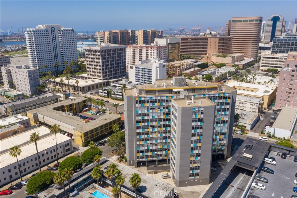 Take the elevator to the 11th floor (TOP FLOOR) and walk in the door to your very own private beach retreat! You are immediately greeted by the wall-to-wall windows boasting expansive views both day and night. During the day you can see Los Angeles, Palos Verdes, the Hollywood sign and snow-capped mountains. By night, your windows are filled with sparkling city lights and it's so close you feel like you can touch them, it's magical! For added privacy, this is an end unit condo with only 1 neighbor sharing your hallway and nobody above. As you walk in the door you are greeted by a remodeled space with beautiful laminate flooring and an open concept kitchen with a full suite of beautiful stainless steel appliances, beautiful newer contemporary cabinetry and quartz countertops. The hallway has ample closet and storage space and leads to a contemporary bathroom and 2 spacious bedrooms. All, with wall-to-wall windows and views. Just adjacent to your door, walk up 1 flight of steps and you are on a rooftop deck with panoramic views, take a glass of wine or cup of coffee with you? Steps outside your door is home to top rated cafes, bakeries, coffee shops, grocery, micro-breweries, Pine Avenue, Outlet Shopping, cycling lanes, bike share program, shopping and all of the urban excitement that is Long Beach! The Royal Palms offers a swimming pool, controlled access, 24 hour cameras, a staffed lobby, rooftop observation deck with views to Orange County, the Santiago Peak, to Los Angeles, the coastline and beyond. Monthly HOA dues of $491 pay your water, hot water, trash, sewage, heat, professional property management, swimming pool, building insurance, onsite laundry room and a staffed office in the lobby. Welcome home to 100 Atlantic Avenue #1108, this could very well be your new home!
