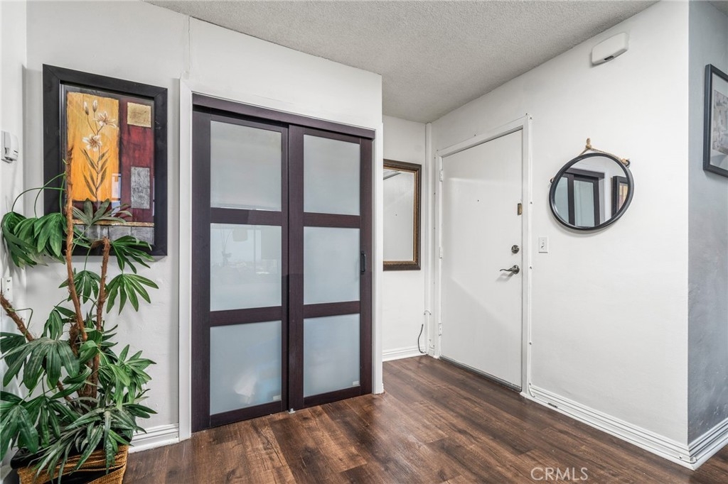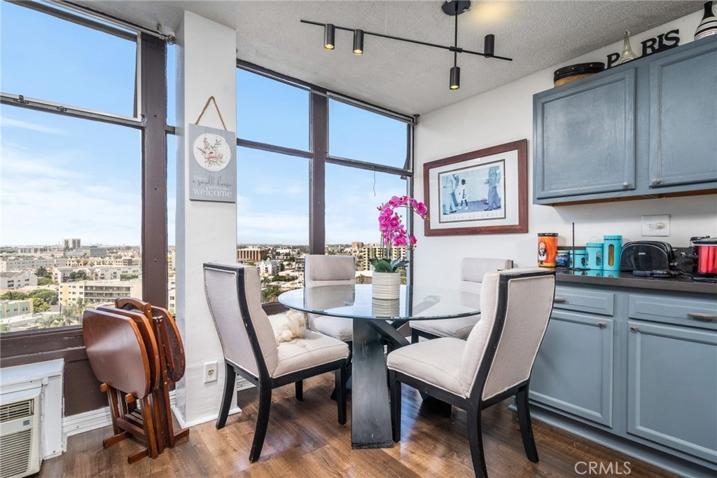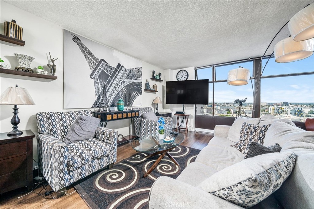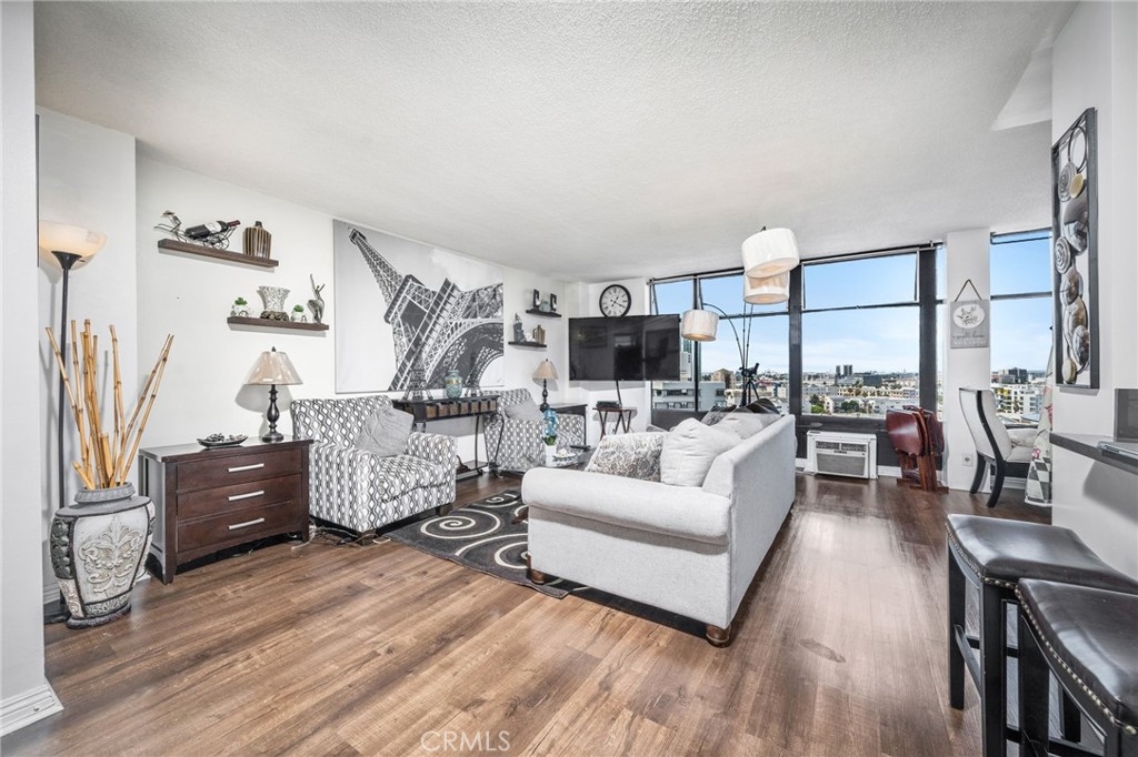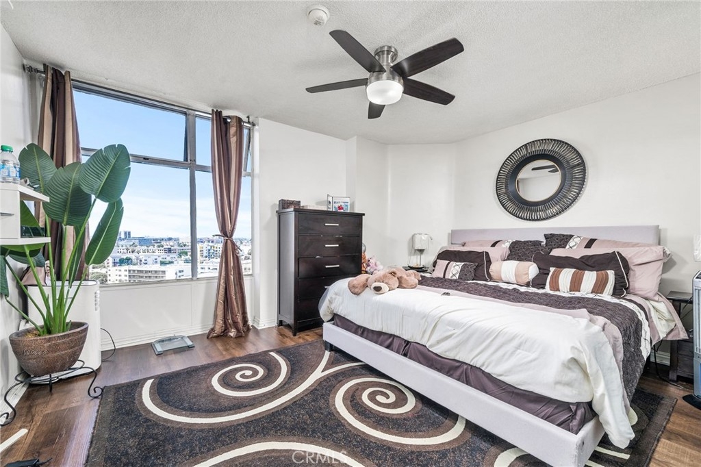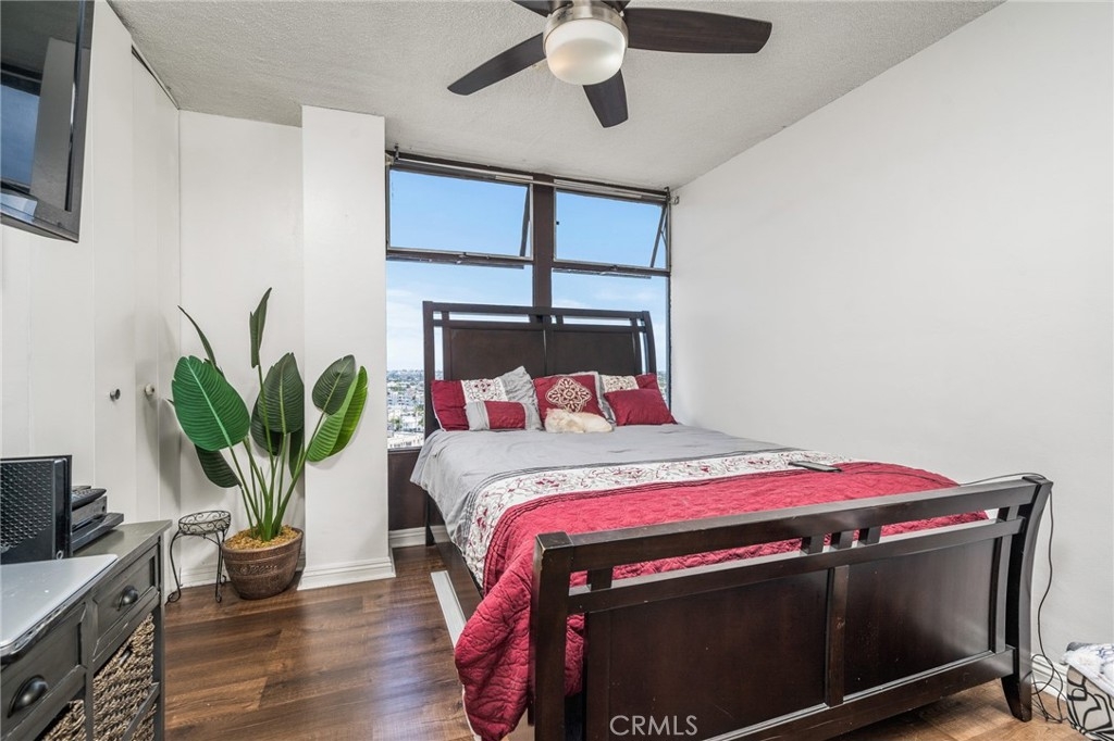 Top Floor of this iconic art deco building at 1st & Atlantic in the International City of Long Beach. This amazing 2 bedroom condo with VIEWS is 1 block from the beach! The entire living room wall has 5 ceiling to floor windows that show magnificent unobstructed VIEWS of the city, sunsets, fireworks and the Hollywood sign. Kitchen is equipped with all stainless appliances, including a French door refrigerator a bottom freezer, electric glass-top oven and above range microwave. Nice charcoal color granite counters and counter high breakfast area. Primary bedroom with a standard King has ample room, custom frosted-glass Anderson sliding closet doors and picturesque view of the city's sunsets. Hunter Douglas remote ceiling fans in both bedrooms. Guest bedroom accommodates a queen bed comfortably and boasts a peak-a-boo view of the OCEAN. Full bath features all new fixtures including a large Delta shower head with a hand-held faucet and soft water filter. Luxury toilet has a large, oval basin with a dual flush system. Flooring throughout is expresso Vinyl Laminate Wood. Living room and hall closet have Anderson 3 lite Euro frosted-glass expresso doors. All bedroom doors are equipped with Schlage lever satin nickel door handles. Enjoy breakfast on the rooftop deck while taking in views of the OCEAN, Queen Mary and even the Hollywood sign. Iconic neighborhood attractions: Crab Shack, Roscoe Chicken and Waffles, PF Chang, Bubba Gump Shrimp Factory, Thai Food, Breakfast Cafe, Night Clubs, The Pike, Movie Theaters, Aquarium of the Pacific, Shoreline Village, the Marina and BEST OF ALL - the OCEAN!!