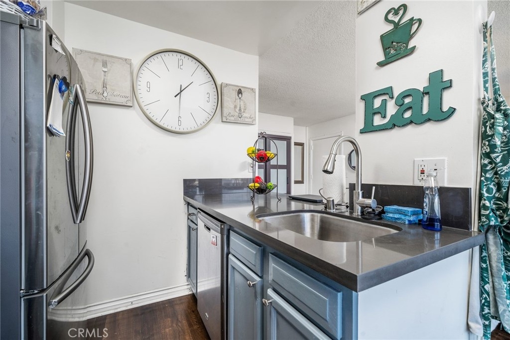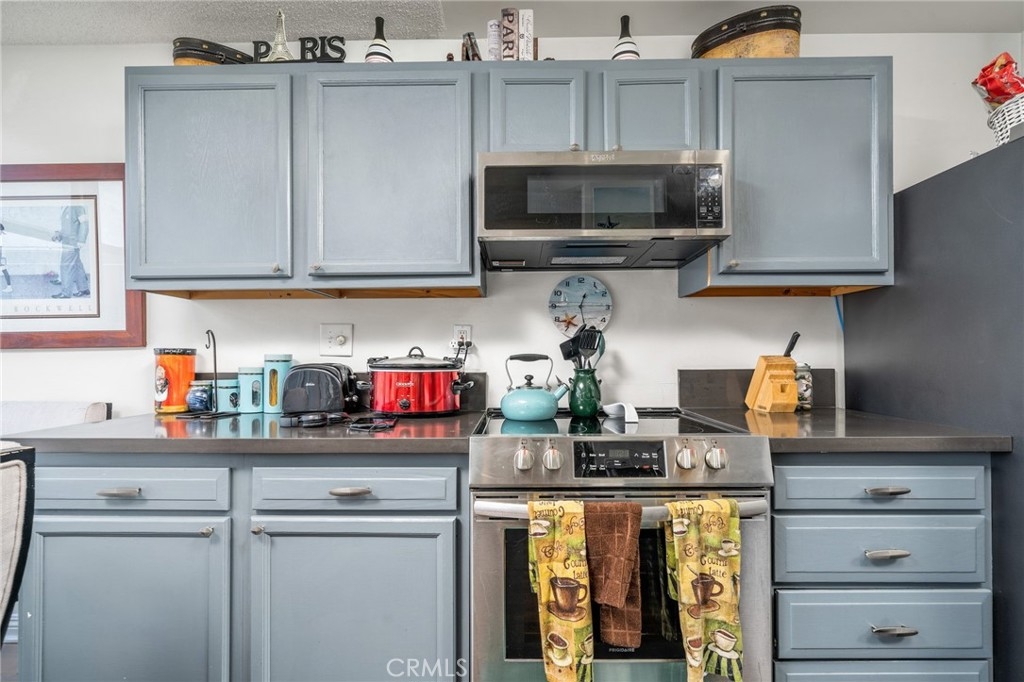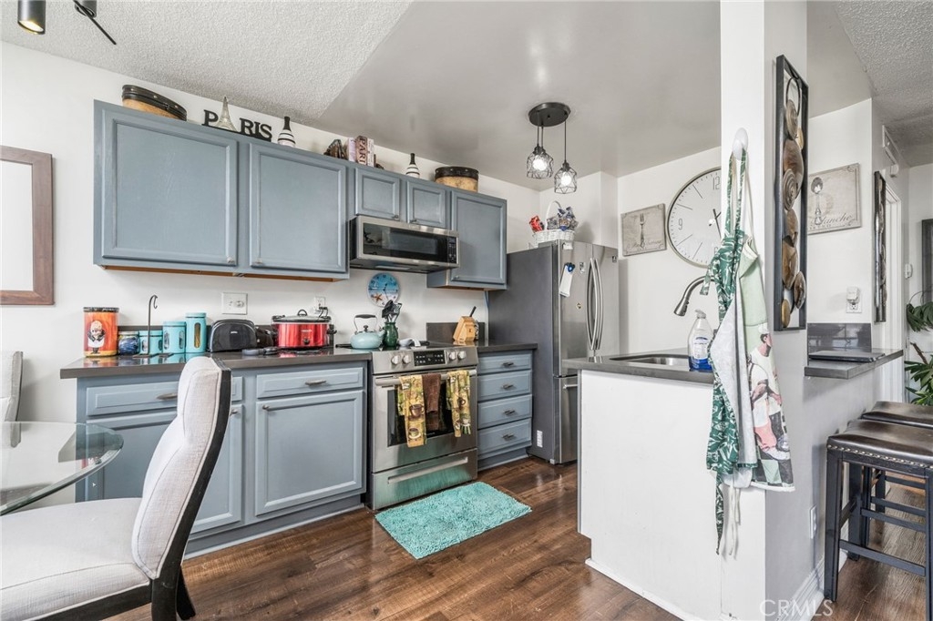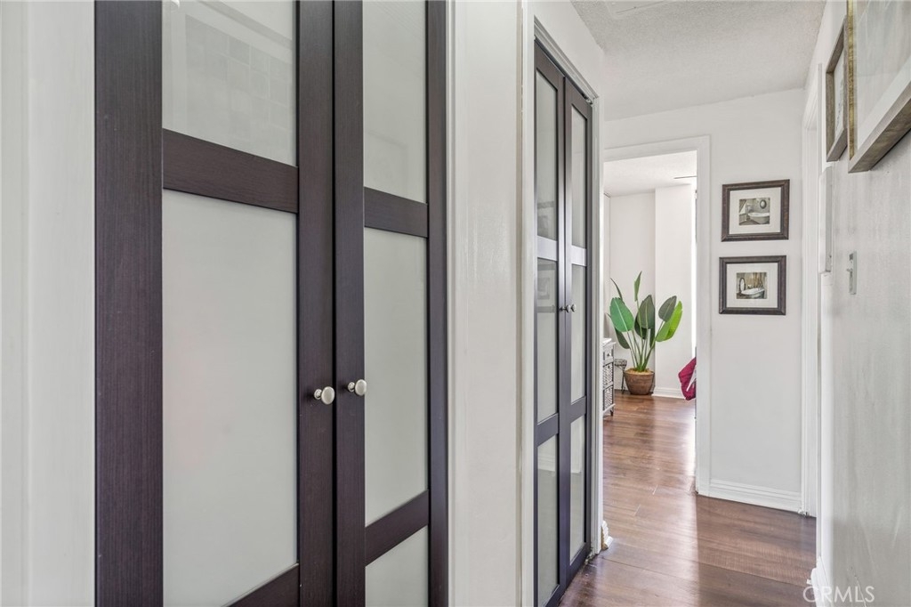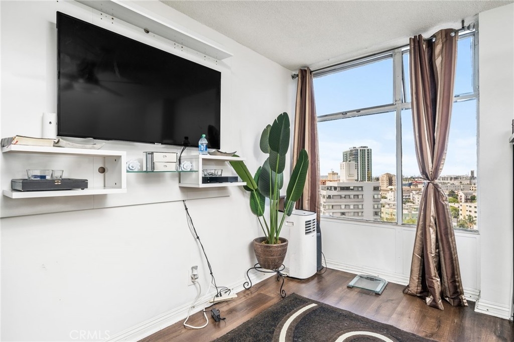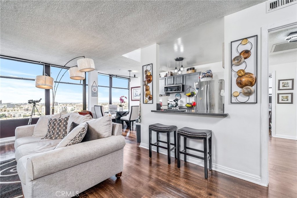 Top Floor of this iconic art deco building at 1st & Atlantic in the International City of Long Beach. This amazing 2 bedroom condo with VIEWS is 1 block from the beach! The entire living room wall has 5 ceiling to floor windows that show magnificent unobstructed VIEWS of the city, sunsets, fireworks and the Hollywood sign. Kitchen is equipped with all stainless appliances, including a French door refrigerator a bottom freezer, electric glass-top oven and above range microwave. Nice charcoal color granite counters and counter high breakfast area. Primary bedroom with a standard King has ample room, custom frosted-glass Anderson sliding closet doors and picturesque view of the city's sunsets. Hunter Douglas remote ceiling fans in both bedrooms. Guest bedroom accommodates a queen bed comfortably and boasts a peak-a-boo view of the OCEAN. Full bath features all new fixtures including a large Delta shower head with a hand-held faucet and soft water filter. Luxury toilet has a large, oval basin with a dual flush system. Flooring throughout is expresso Vinyl Laminate Wood. Living room and hall closet have Anderson 3 lite Euro frosted-glass expresso doors. All bedroom doors are equipped with Schlage lever satin nickel door handles. Enjoy breakfast on the rooftop deck while taking in views of the OCEAN, Queen Mary and even the Hollywood sign. Iconic neighborhood attractions: Crab Shack, Roscoe Chicken and Waffles, PF Chang, Bubba Gump Shrimp Factory, Thai Food, Breakfast Cafe, Night Clubs, The Pike, Movie Theaters, Aquarium of the Pacific, Shoreline Village, the Marina and BEST OF ALL - the OCEAN!!