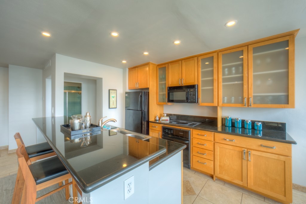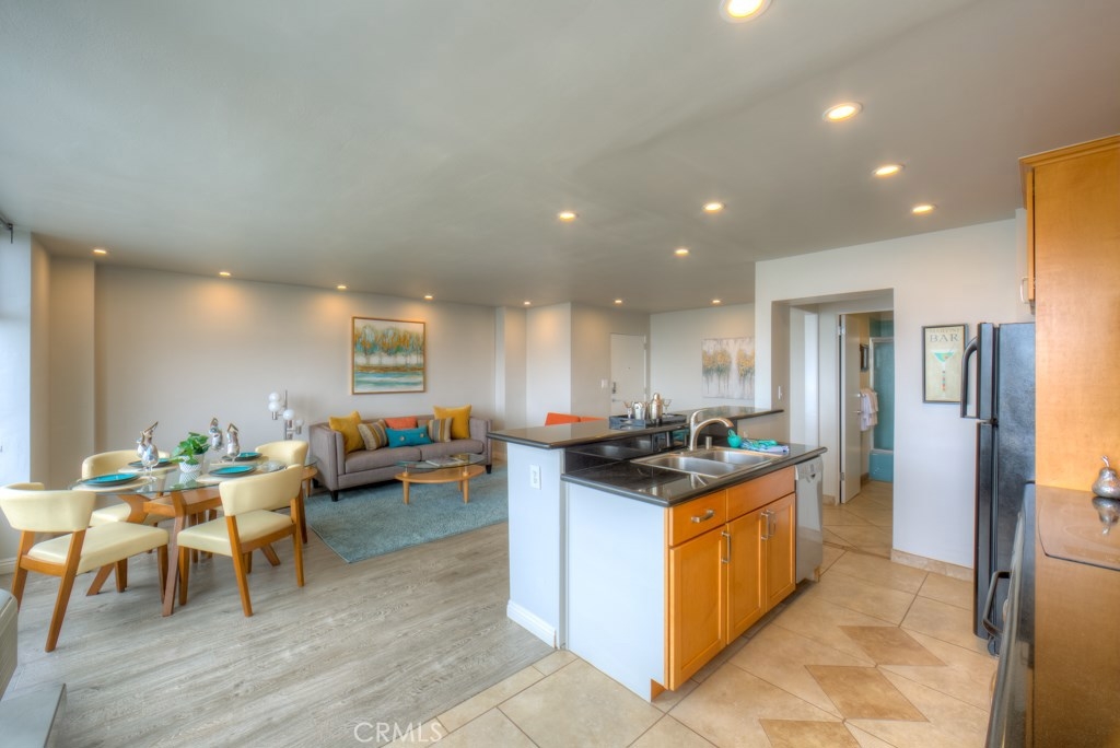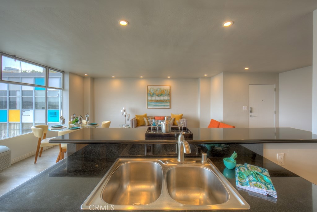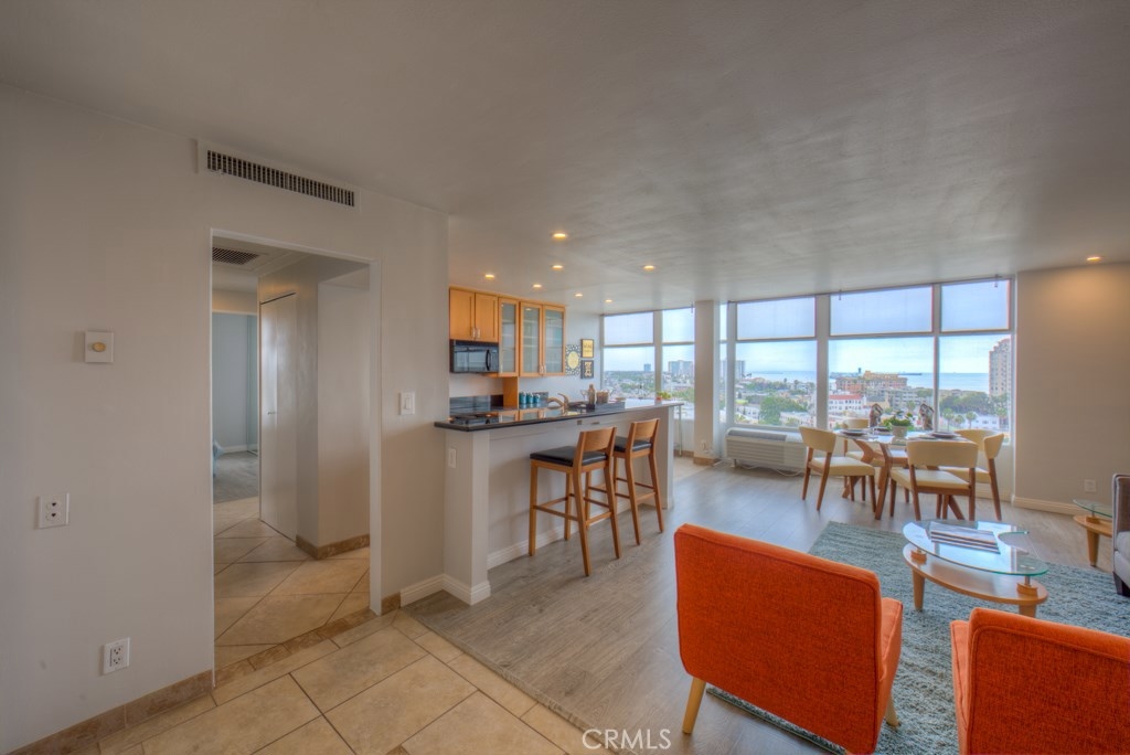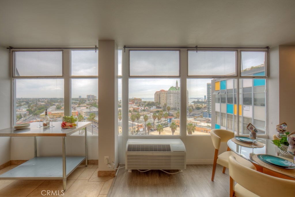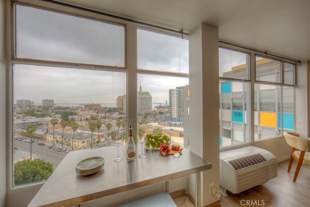 Take the elevator to the top floor and walk down a semi-private hallway to your very own condominium in the sky! This is a rarely available end unit in the "09 stack" with wrap around floor to ceiling windows offering expansive views. Count down 3 piers and you'll see Huntington Beach. Yes, the full ocean views are gorgeous by day and city lights fill your view at night. The historic Villa Riviera is breathtaking all lit up at night. This 2 bedroom home has an open concept floor plan with beautiful granite countertops, recessed LED lighting on dimmer switches, new wood laminate flooring, custom tile in formal entryway, mirrored wardrobe doors and an obvious nod to it's mid-century roots. The bar countertop is nearly 9 feet long and is wide open to the living room which is great for entertaining. The master bedroom has views down the coastline and a custom closet organizer. The commercial grade Freidrich air conditioner will keep you nice and cool all summer long. And, yes, a separate storage space is included! Just outside your door and up one set of stairs you'll be on a rooftop observation deck with full panoramic views directly above your new home. The Royal Palms is pet friendly (weight restrictions apply) and has a swimming pool and laundry. HOA dues of $456 a month pays your water, trash, sewage, hot water, bike storage room, heat, onsite management, building maintenance, insurance and pest control. Welcome home to 100 Atlantic #1109 - you'll love it here!