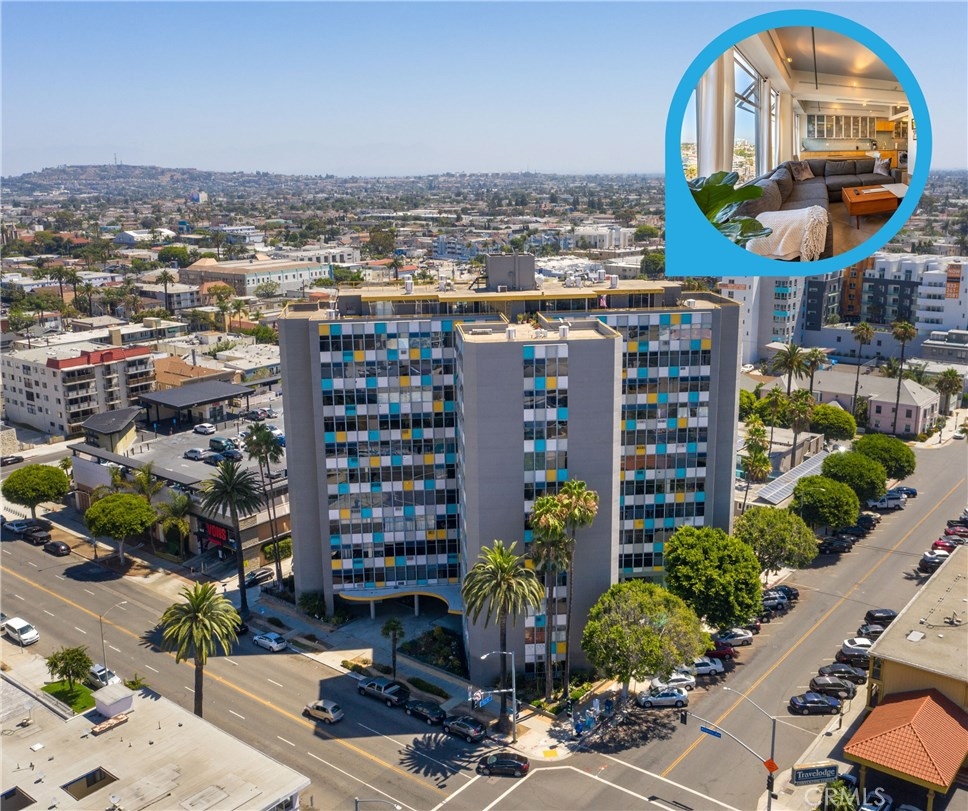 Take the elevator to the top floor (11th) and walk into your own private retreat at the beach. Step inside and see expansive views out of wall-to-wall windows. See Big Bear, Signal Hill, the Pyramid at CSULB, Santiago Peaks and even a peek-a-boo coastline view. The beautiful city lights begin to sparkle as the sun slowly sets! This home boasts open concept living with tiled floors, a beautiful contemporary kitchen with custom backsplash opens up to the living room, spacious bathroom, soaring 11 +\- foot high ceilings, air conditioning and even your own laundry with an LG washer/dryer combo. There's plenty of additional custom-built storage space that you must see! With a WalkScore® of 97 you can rest assured you are in the heart of cafes, coffeeshops, art galleries, cider houses, breweries, nightlife on Pine Avenue, East Village Arts district and outlet shopping at the Pike. Your new home is just 2 blocks away from the sandy beach and it's beautiful walking and bike paths. Enjoy an afternoon at Shoreline Village, a short walk away! Monthly HOA dues are an affordable $357 and pays your water, hot water, trash, sewage, onsite management, nightly security patrol, property management, Swimming pool, controlled access systems, two elevators, bike storage room, landscaping and building maintenance. The Royal Palms is pet friendly and a 35lb weight restriction applies. This is a lifestyle you deserve, welcome home!