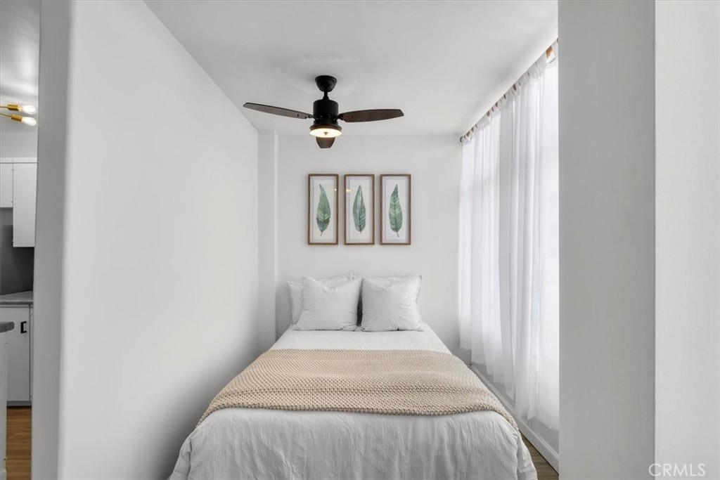 Welcome to your new home at the sought-after Royal Palms building located in downtown Long Beach, just blocks from the beach! This move-in ready unit boasts updated flooring, modern light fixtures, new electrical panel, and an abundance of natural light, creating a bright and inviting living space. This large studio has a separate nook, so your bed doesn't have to be in the middle of your main living area. The pet-friendly community offers a secured entrance for your peace of mind, a refreshing pool to relax by, convenient on-site laundry, trash chute, and Amazon lockers for all your delivery needs. HOA covers water, trash, forced air heat, maintenance, and on-site management. Nestled in the heart of downtown Long Beach, you'll enjoy the vibrant urban neighborhood with a beachy vibe, filled with charming cafes, delectable restaurants, and stylish hotels. Entertainment options are endless with attractions like the Long Beach Performing Arts Theater, The Aquarium of the Pacific, The Pike, and Rainbow Harbor just a stone's throw away. Plus, being situated next to Vons makes grocery shopping easy. With the Metro A line only 3 blocks away, commuting is a breeze, offering easy access to all the excitement that Long Beach has to offer. Don't miss out on this fantastic opportunity to live in style at The Royal Palms! FHA approved