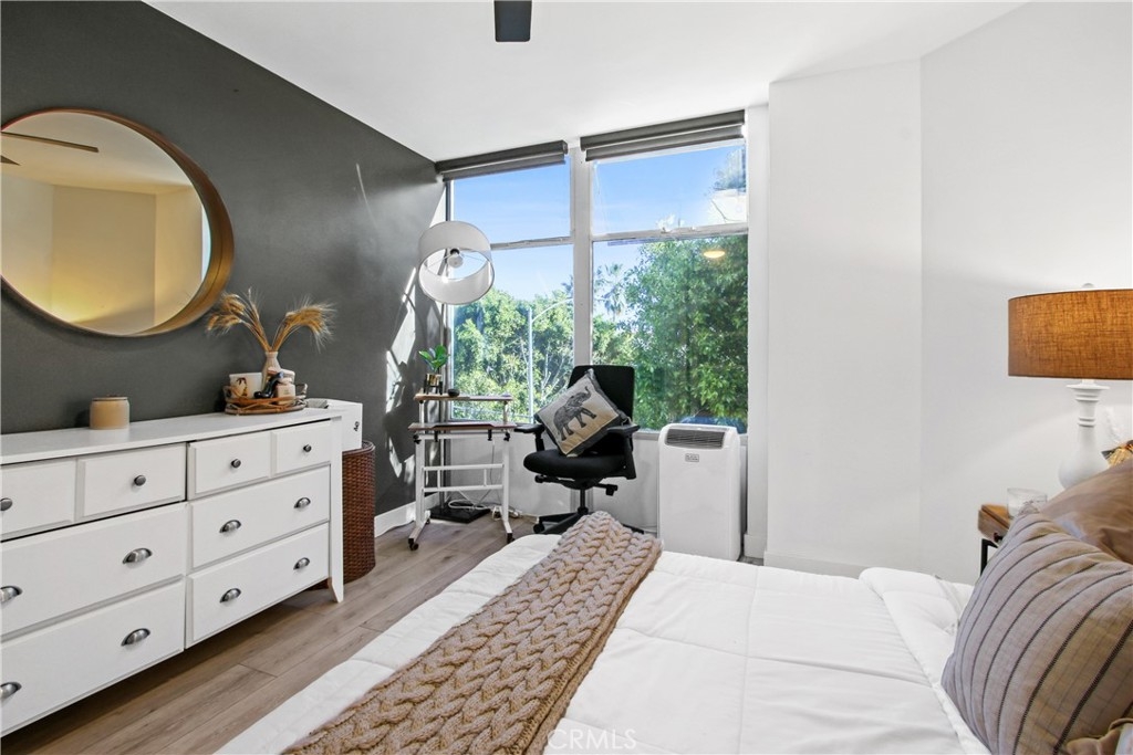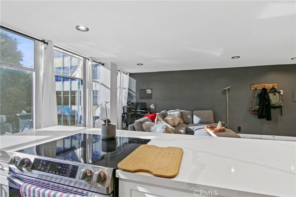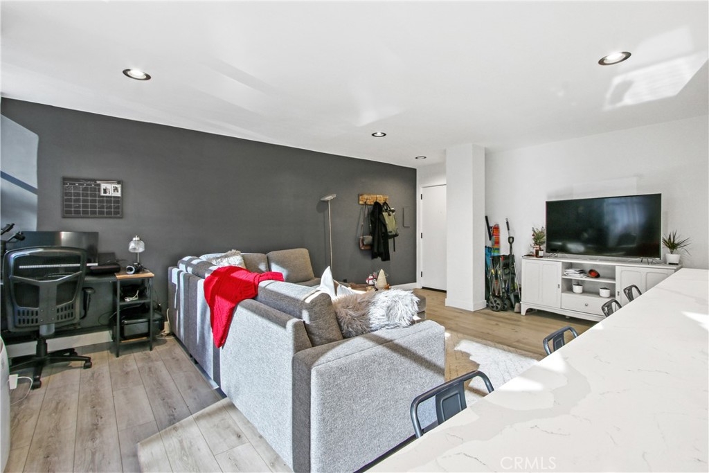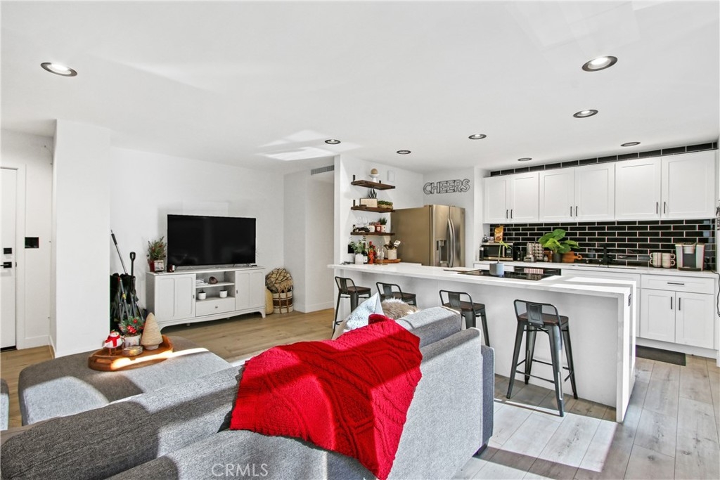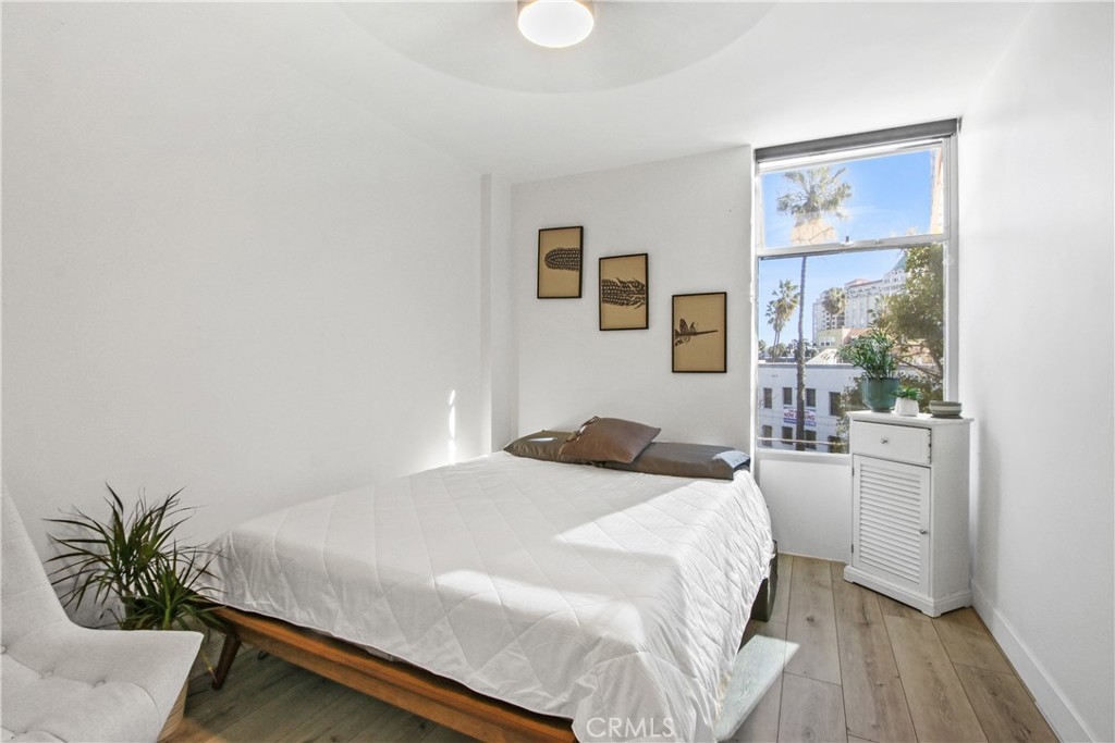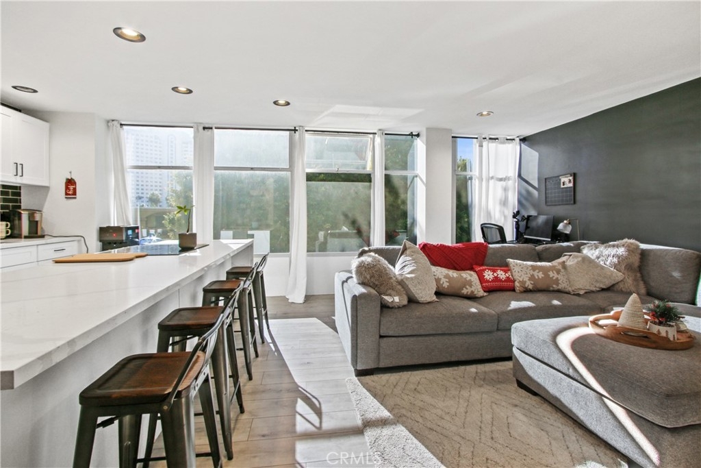 Just two blocks from the beach and surrounded by cafes, shops, local transit, bars, and restaurants, ocean breezes blow through this bright condo in the heart of downtown Long Beach. 2-bedroom 1 bath condo in the Royal Palms complex located in a prime East Village area of Downtown Long Beach. The Royal Palms now allows for owners to rent the unit. This unit has been completely renovated with a modern, clean style and no expense spared. Open floor plan with large windows lets in the natural light in this southwest facing unit. Smooth finished walls and ceilings. Light gray color high end distressed finish floors. The enlarged kitchen now features a peninsula over 10 feet long with a waterfall edge and seating for 5, White Shaker cabinets and Calcutta finish quartz counters, Black glass backsplash tile, Lazy Susan, Black granite composite sink, black finish faucet, Samsung smooth glass top range for easy cleaning, Bosch dishwasher with stainless tub. Bathroom has white subway tile, hexagon pattern floor tile, modern floating vanity and lighted vanity mirror, 3-way shower valve for tub spout, hand held shower wand and large rain head shower, one pc. toilet. Hallway has large, deep floor to ceiling White Shaker cabinet for storage. All new paint thru-out * Recessed L.E.D. lighting. All new hardware, fixtures, lights, outlets, switches, etc. This is a fabulous location just steps from the beach, downtown restaurants and entertainment. Monthly HOA dues include water, hot water, trash, sewage, heat, professional property management, swimming pool, building insurance, onsite laundry room and a staffed office in the lobby.