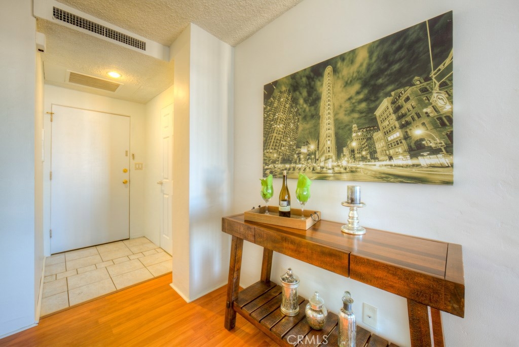 This 1 bedroom home boasts a remodeled kitchen with new quartz countertops, custom tiled backsplash, faucet and a deep stainless steel sink. You'll love the wood laminate and tiled flooring as you walk throughout the home. Into the bathroom you'll be greeted with a new vanity, sink, faucet, mirror and contemporary lighting. The bedroom is spacious and has mirrored wardrobe doors and a remote controlled ceiling fan with lighting. All new interior doors and contemporary hardware are installed for you. Low monthly HOA dues of $269 pay your water, trash, hot water, onsite management, building maintenance, community laundry, building insurance and landscaping. HOA parking is assigned via a waiting list. As an owner sells, the next name off the list gets the parking sport for $50 a month. While you name works it's way up the list there's monthly parking permits in surrounding lots are available from $55 to $140 per month and are just outside the door. The walk score rating is 97 (walkers paradise) & you'll be just steps to the bike paths, grocery, beach, coffee shops, art galleries, restaurants, theater, nightlife, metro blue line and so much more. Walk to everything! The Royal Palms is pet friendly and has a swimming pool for an evening dip. Welcome home to 100 Atlantic Avenue #407 - you'll love living here!