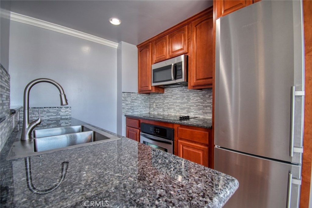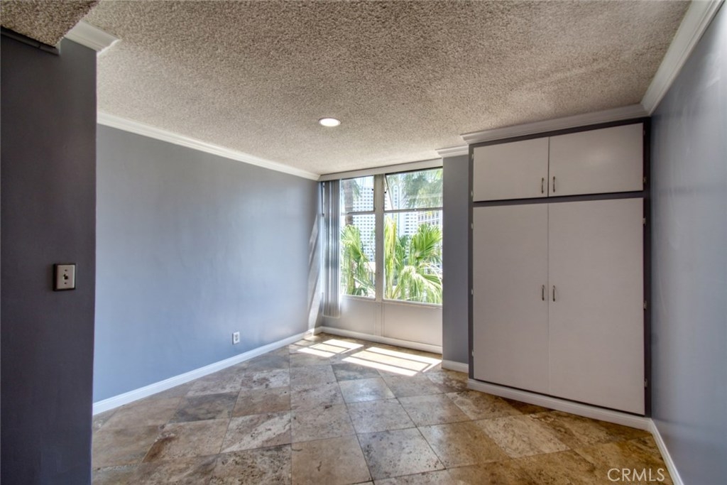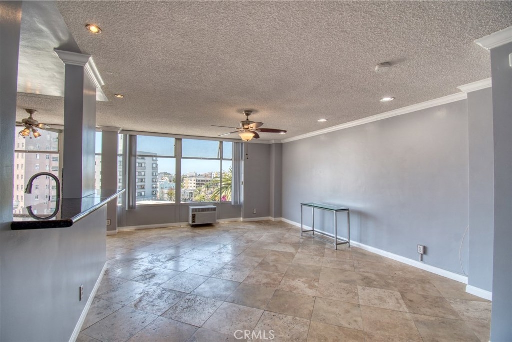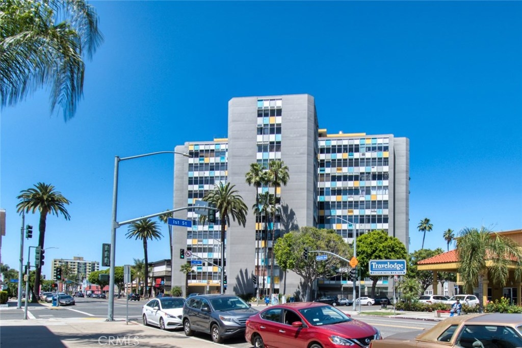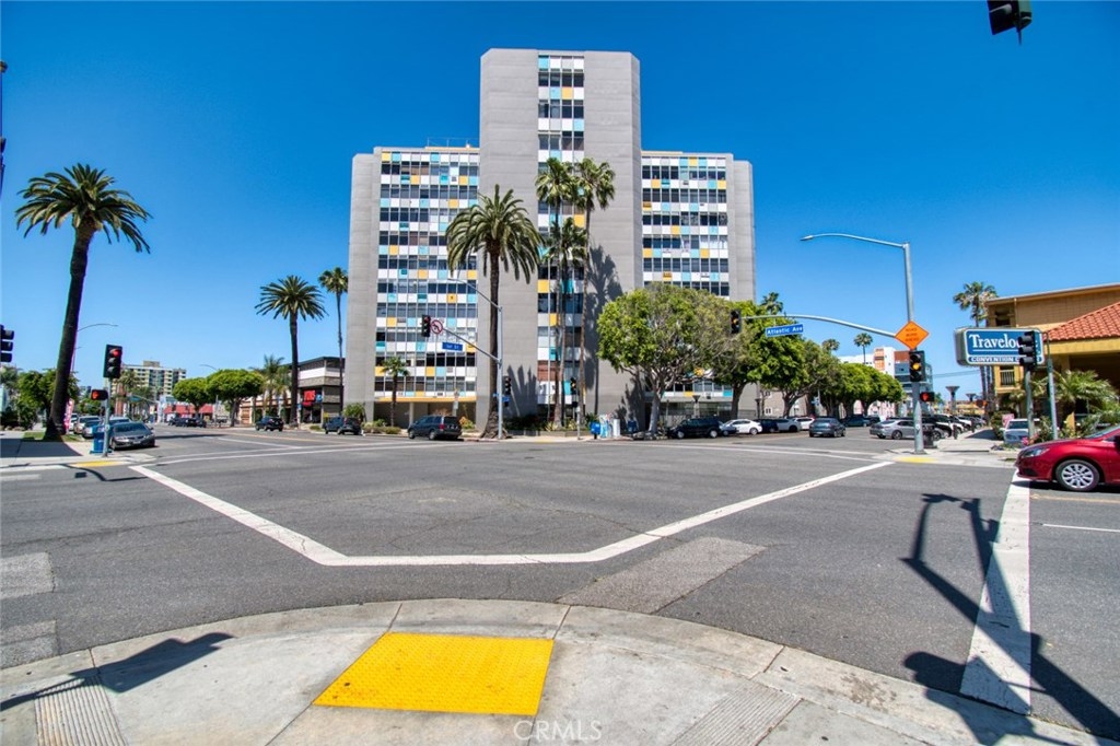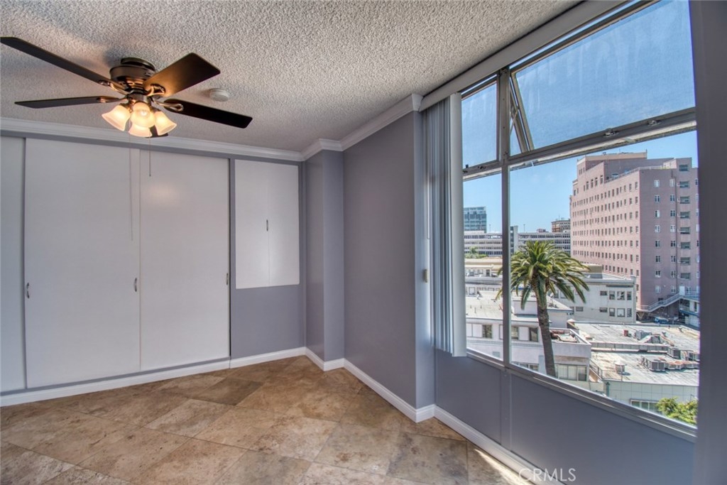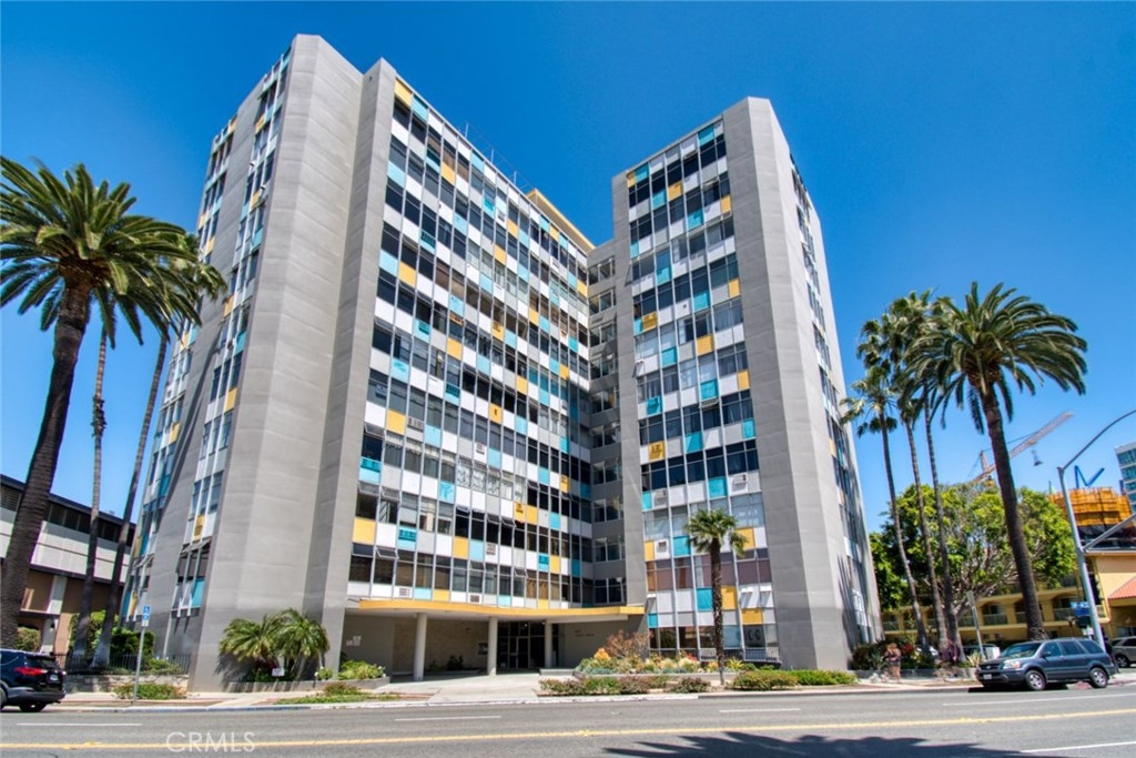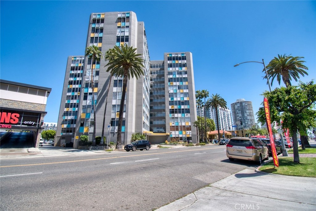 Move in Ready; Beautiful unit in the Royal Palms building! This iconic building is located in the East Village Arts District of Long Beach. Your Buyers will love this open concept two bedroom one bath unit. It features floor to ceiling windows with gorgeous views of the city skyline and peak-a-boo ocean view, granite countertops and travertine floors throughout. Buyers will be pleased with this Downtown Long Beach Neighborhood with a Walk Score of 97 and plenty of bike lanes! Close to shopping, transportation, museums and fine dining. Only a short walk from the beach, Pine Avenue, the Pike, the Blue Line Metro Station and all amenities of urban living. The building is Pet Friendly with weight restrictions (35 lbs). Community laundry and storage space in garages below. HOA dues cover hot/cold water, trash pickup, forced air heating as well as on-site management and security. Unit has no assigned parking. There is a waiting list to obtain parking on the premises but nearby buildings offer parking for rent on a monthly basis. Per HOA regulations, no leasing allowed. Information deemed reliable but Buyer is to conduct his/her due diligence. Very Motivated Seller. Bring all offers! Unit sold 'As Is.' Seller has RE License.