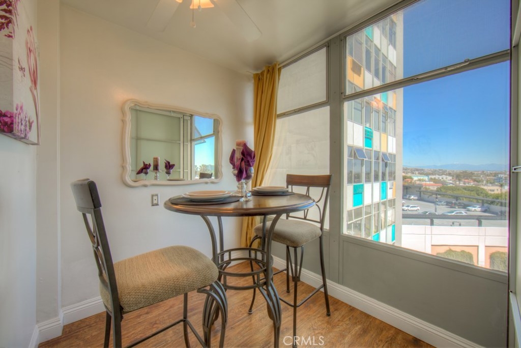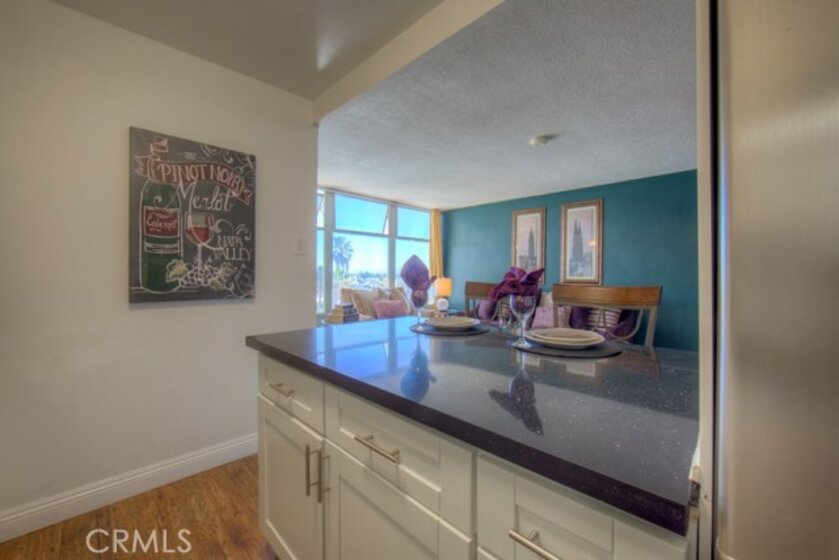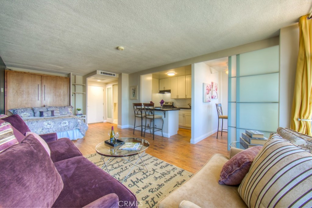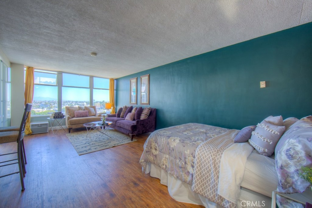 This remodeled studio is perched on the 6th floor and has expansive city views and beautiful city lights at night from wall-to-wall windows. Fresh paint, laundry hookups, air conditioner, wood laminate, newer designer shower doors, high rainfall shower head, upgraded lighting, stainless steel refrigerator, granite countertops and loads of closets really showcase a fantastic use of space. In the bedroom area is very nice Murphy bed and just outside the bath is wardrobe space, laundry hookups and built in cabinetry. There is a separate area for dining that could also be used as a home office space or computer room. The Royal Palms boasts a sparkling swimming pool and your pet is certainly welcomed (size restrictions apply). Very reasonable HOA dues of only $264 pay for your water, hot water, heat, trash, sewage, onsite management, building insurance, landscaping, nightly security patrol and onsite management! The WalkScore is 96 - just outside your door is home to some of the best cafes, coffee shops, bakeries, grocery, art galleries, the beach, Long Beach Bike Share, Cider house, Wine District, Thai District for you to explore, entertain guests and enjoy. Parking is assigned via the HOA and is a waiting list. In the meantime, monthly parking permits are available in lots that surround the building and range from $45-$140 monthly. Welcome home to 100 Atlantic Avenue #611, we're sure you'll love it here.