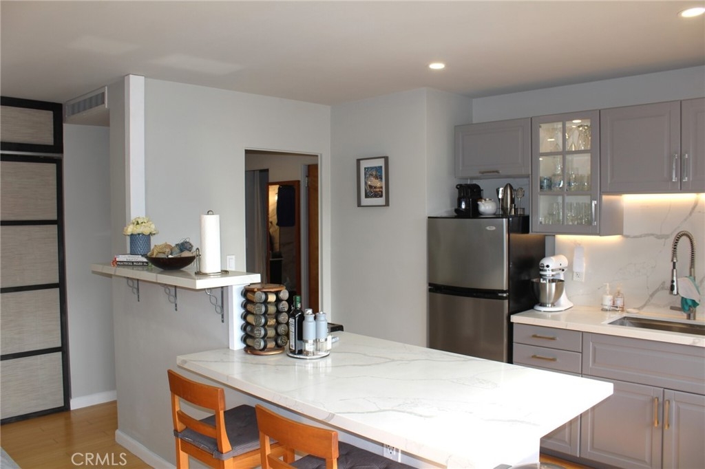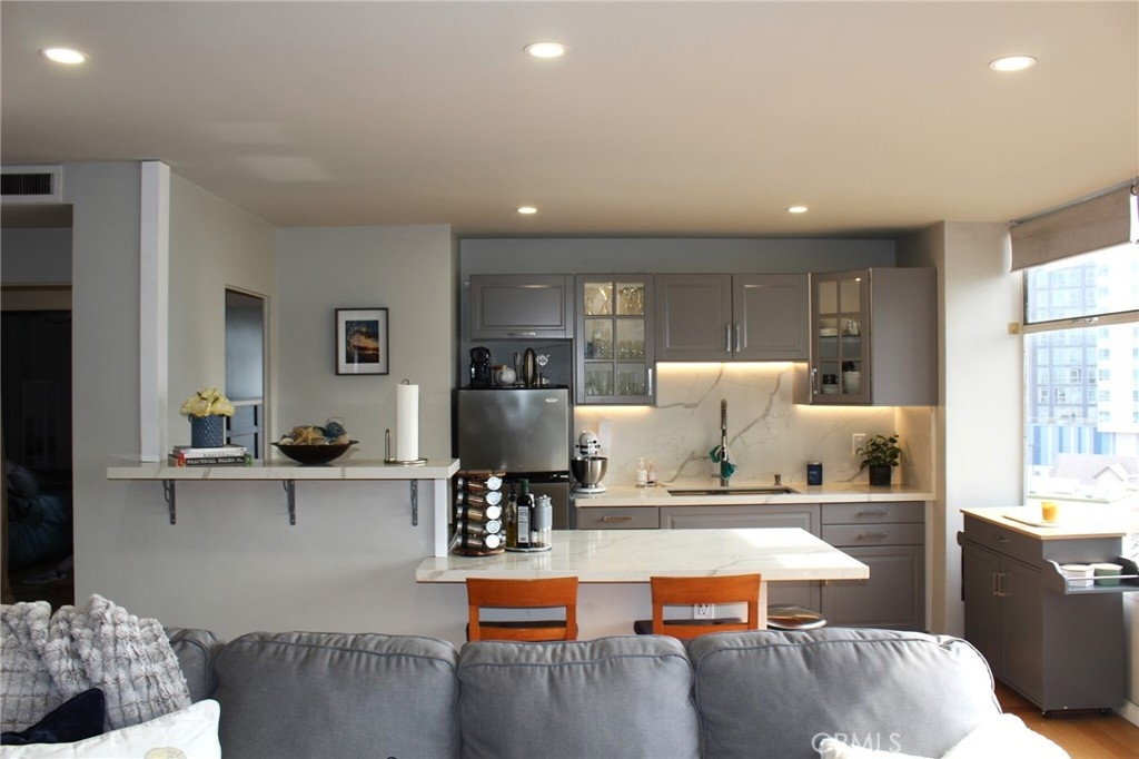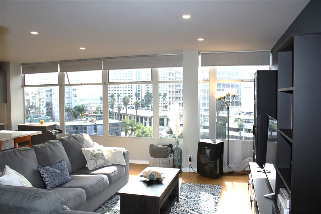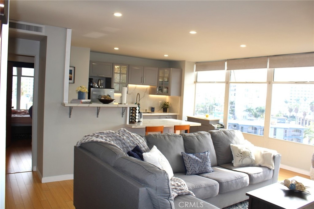 A beautiful updated two bedroom one bath condominium with a great view of the ocean and the Queen Mary. An updated kitchen with an open floor plan. The bathroom has recently been updated and both bedrooms have a beautiful view of the city. Easy access to the pool and HOA includes water and trash. This beautiful condominium is located in a prime area of Long Beach close to restaurants, cafes, art galleries, Shoreline Village and the Convention center.
