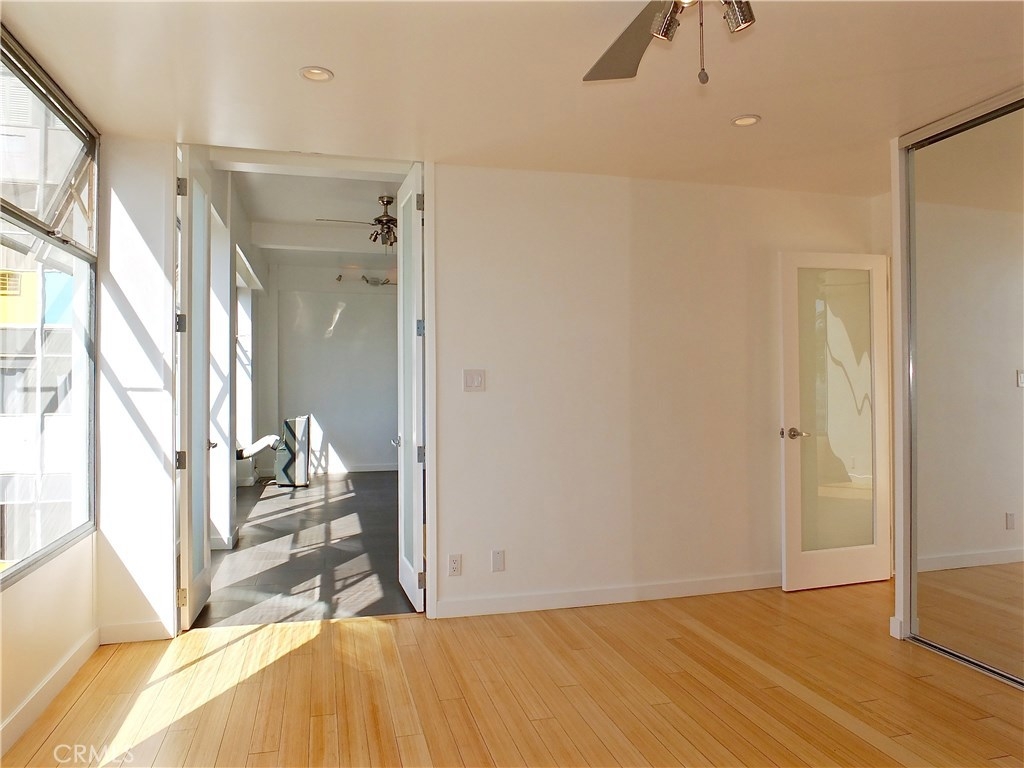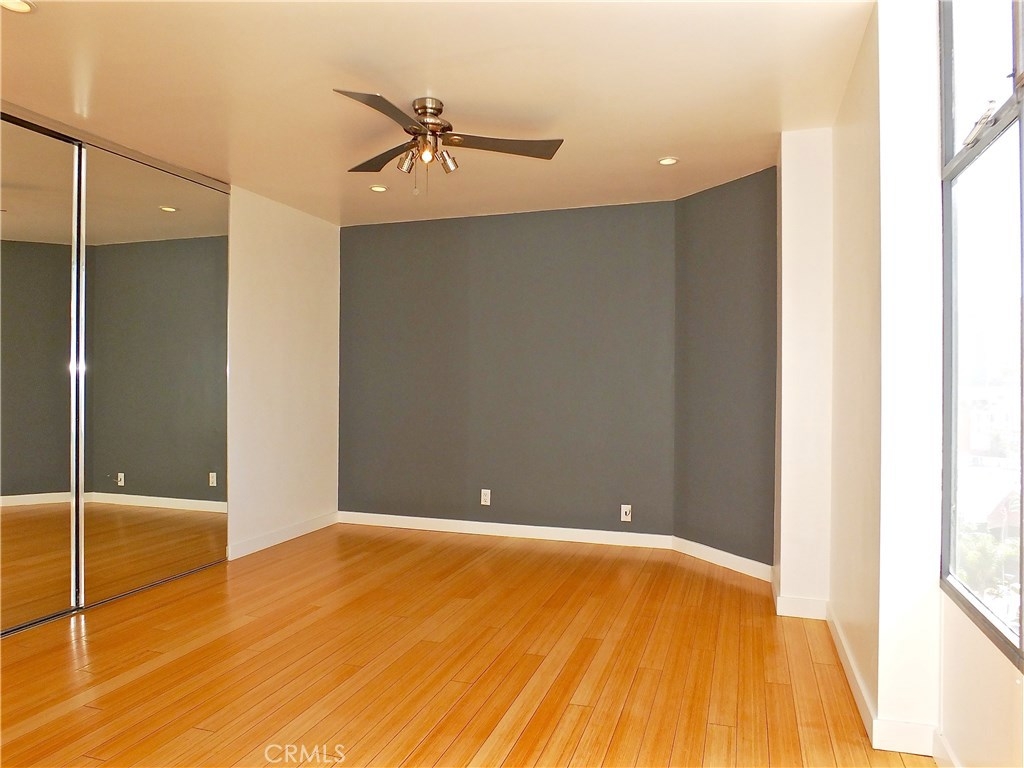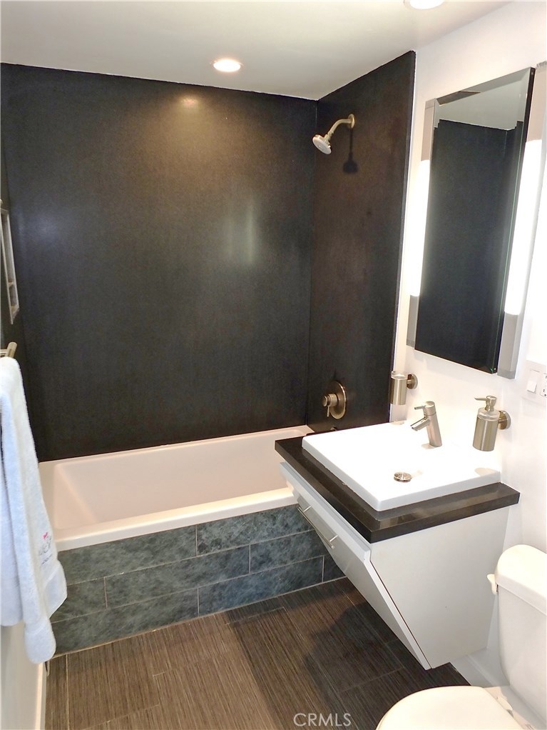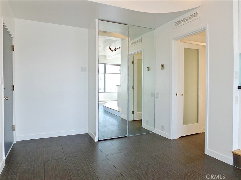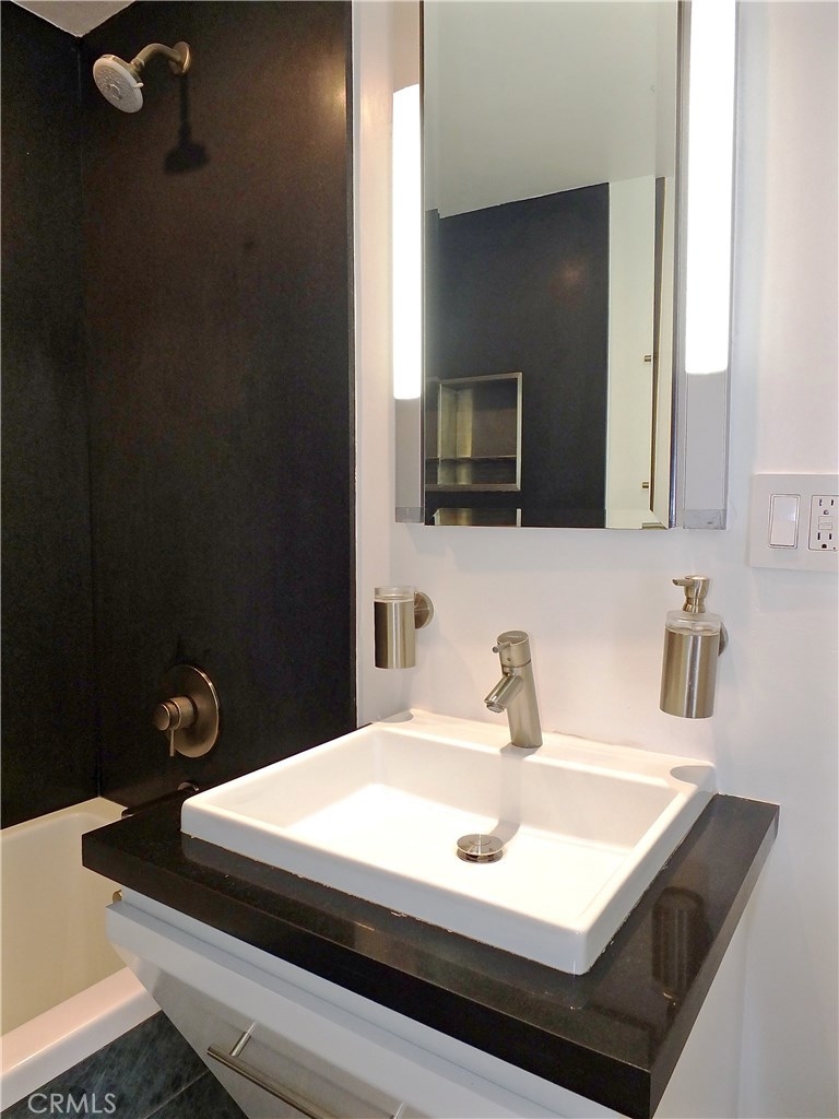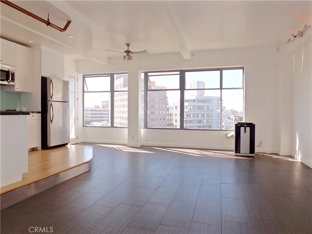 Located in the heart of the East Village Arts District of Long Beach, The Royal Palms is an 11-story building that lends a healthy mid-century look to the downtown skyline. Renovated and upgraded to reflect a modern lifestyle with an urban and European design aesthetic, this 7th floor unit, has great city views and light, with lots of huge windows and high ceilings. A corner unit with only one shared wall, high above the city streets, like an oasis in the heart of the city. Tile flooring through the living and bathroom areas and bamboo in the bedrooms. The raised kitchen platform with open walls, creates a large and inviting great room. Stainless appliances, custom cabinetry, glass backsplash and Galaxy Black granite add to the modern and sleek style of the unit. Custom cabinet in bathroom with grout-free panels of Galaxy Black granite in shower enclosure and on counter top. Walking distance to the beach, metro rail, shops, restaurants, and waterfront attractions.