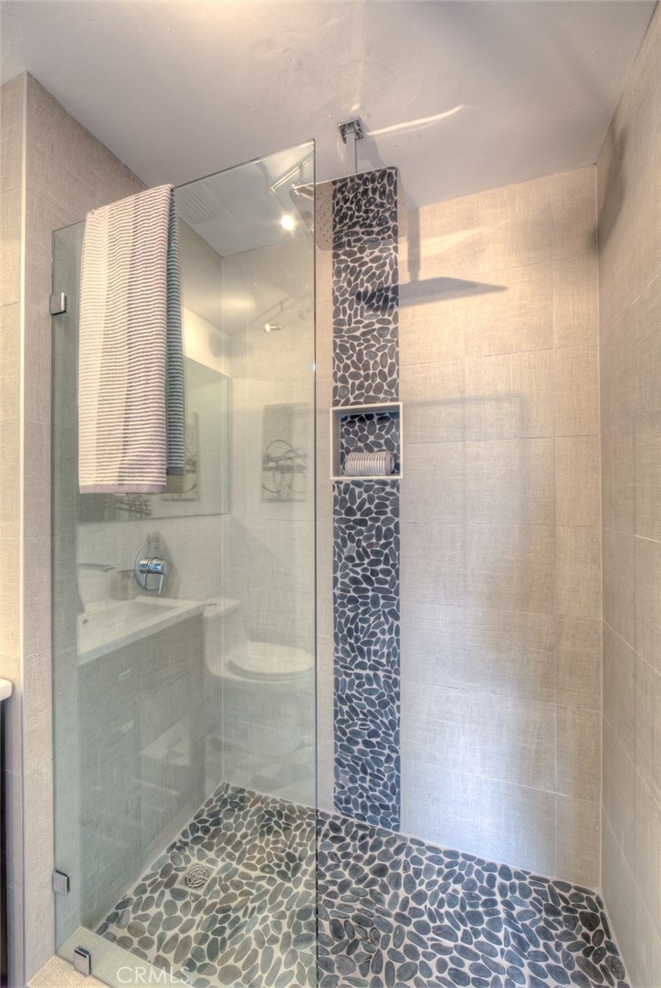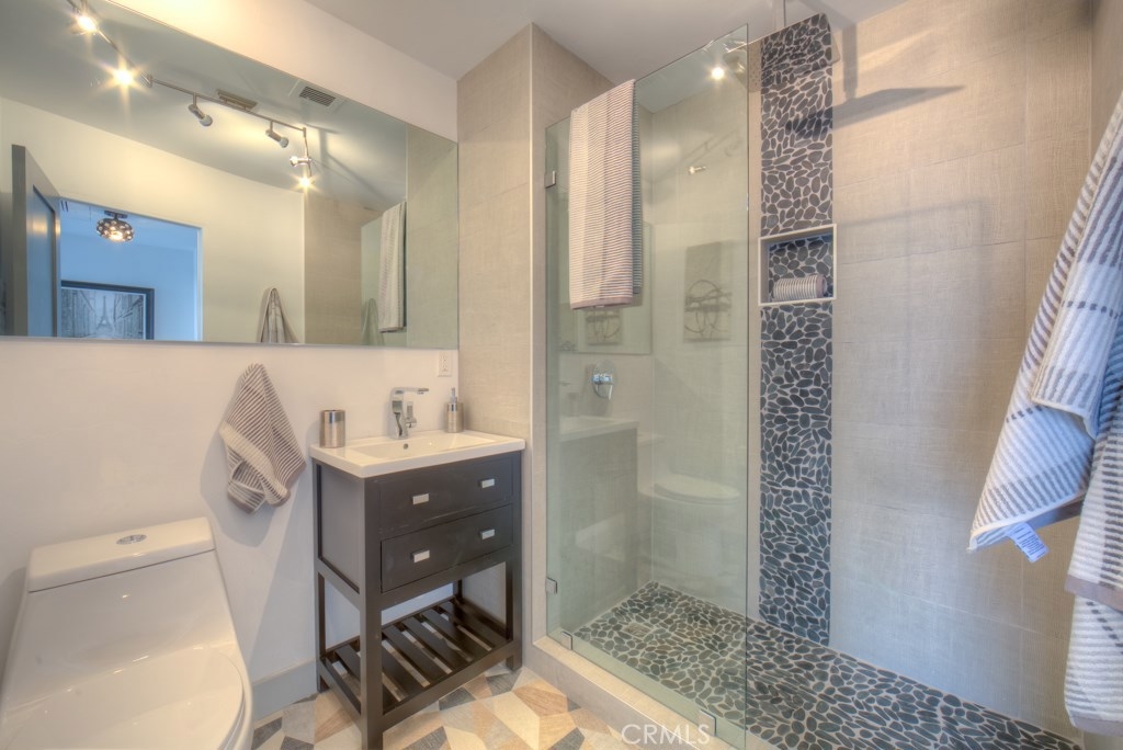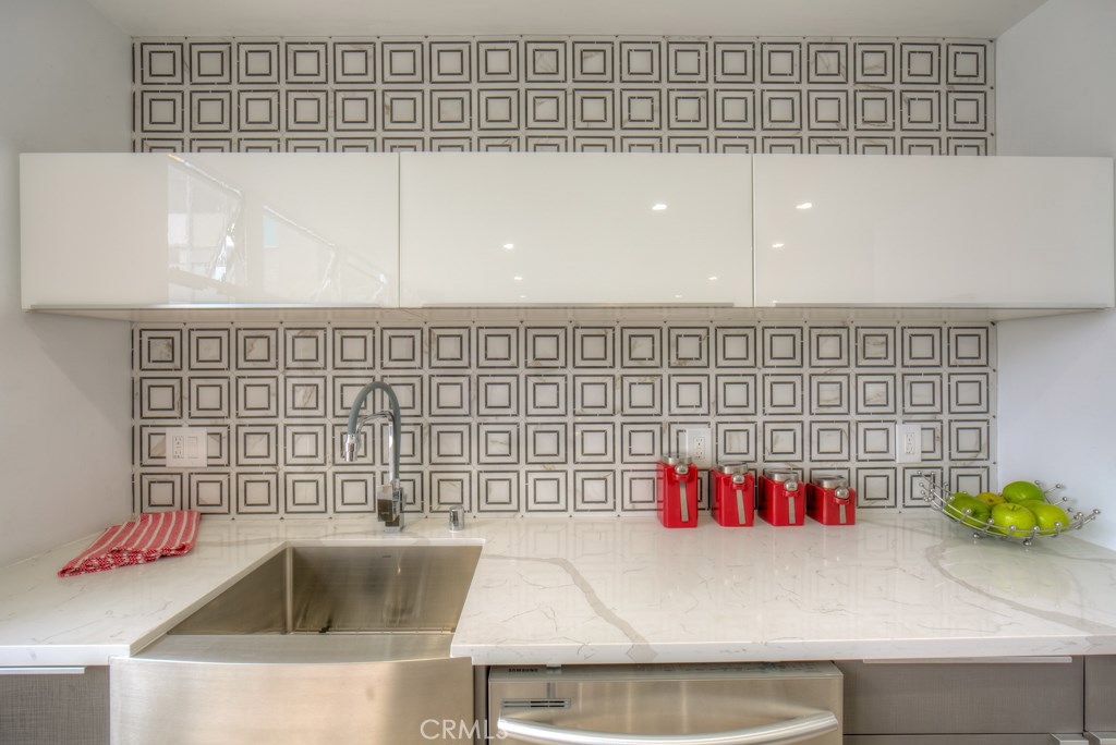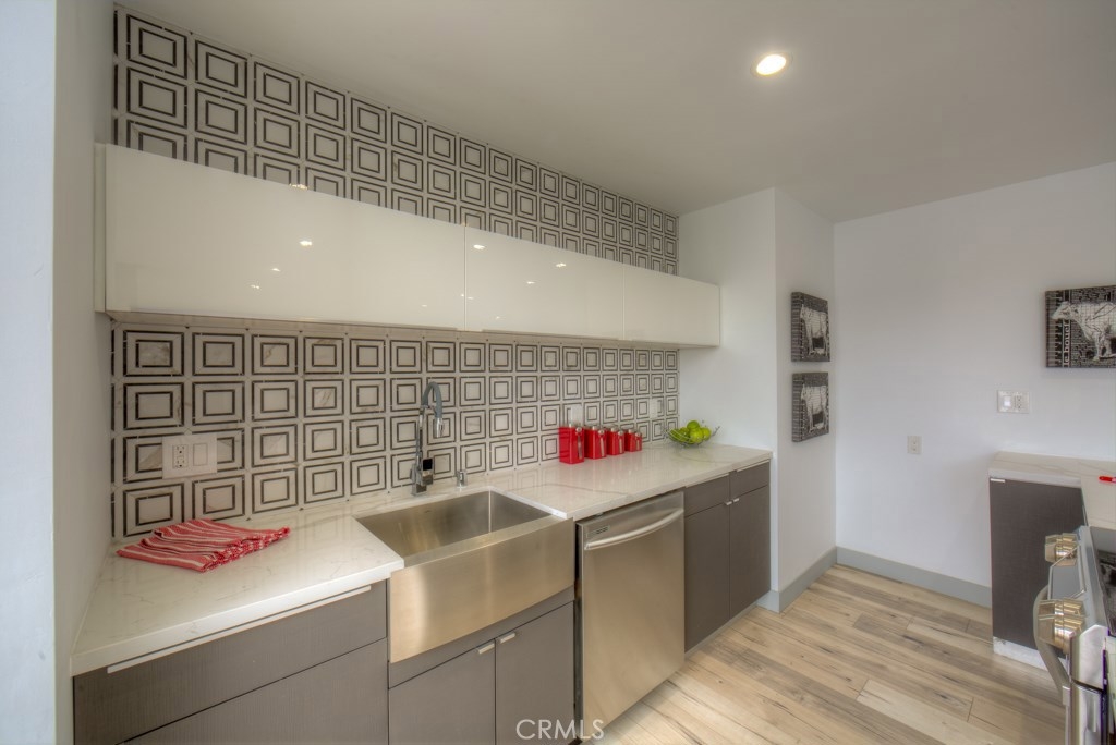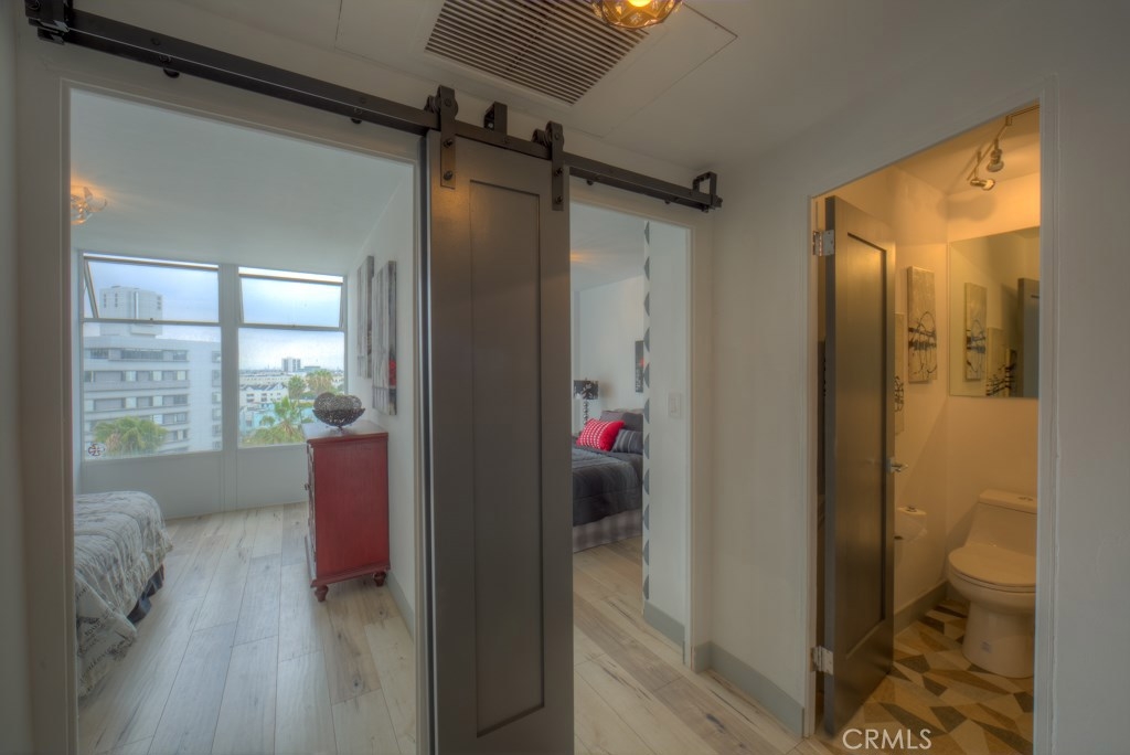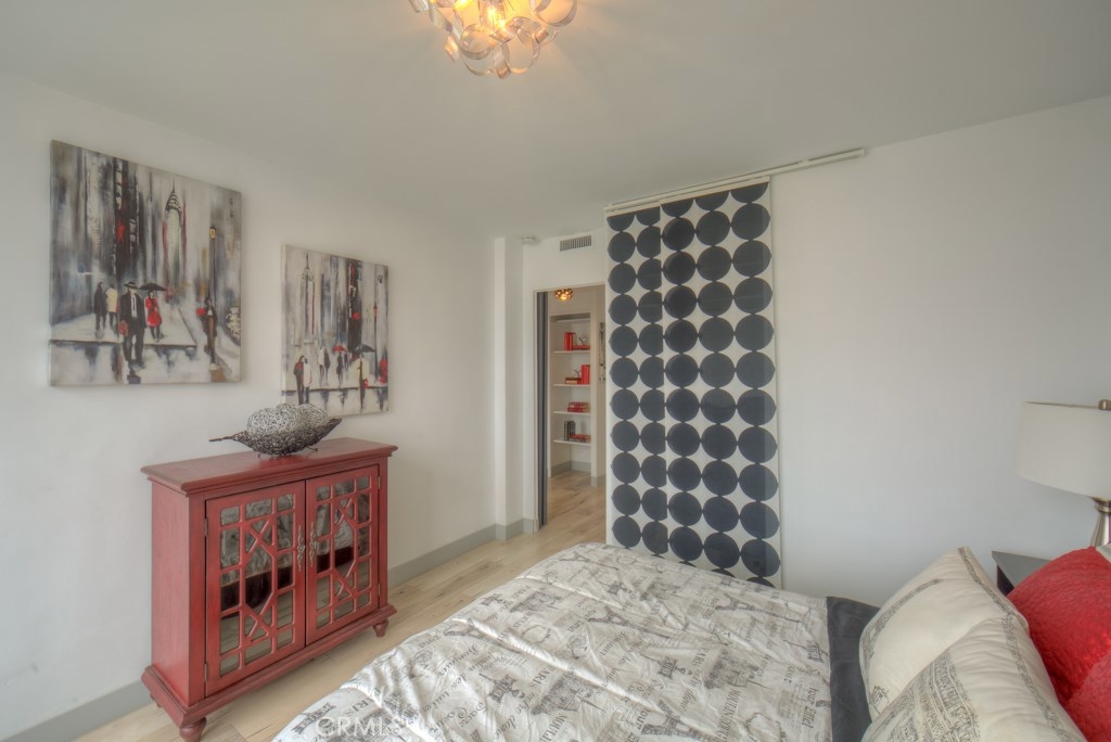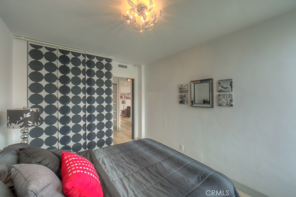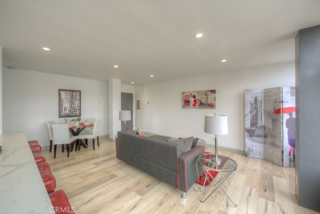 Your opportunity to own a piece of paradise! Super modern and completely remodeled 8th floor corner unit 2 bed 1 bath urban living space in the Royal Palms in the heart of East Village. Every room offers breathtaking city views and tons of natural light, view of downtown Marina and cruise ships from kitchen. Main living space is open concept with gorgeous new chef's kitchen perfect for entertaining! Kitchen features new Euro flat panel cabinets, new calacatta quartz countertops with dramatic waterfall edge at end of 9 foot long peninsula, counter height breakfast bar for relaxing with your morning coffee and enjoying the views. New stainless steel state-of-the-art Samsung induction range (energy efficient and you can even control with your smartphone!) and matching Samsung dishwasher. Beautiful patterned stone backsplash and stainless steel apron sink. All new designer remodeled bathroom with custom tiled shower, luxurious ceiling mounted rain shower head, frameless shower splash panel, new vanity and fixtures, new tile floor. New wide plank wood laminate flooring in all living spaces, LED recessed lights, new interior doors. Freshly painted throughout with contrasting gray tones for doors and baseboards. Pet friendly, HOA dues pay your water, trash, sewage, hot water, bike storage room, heat, on-site management, building maintenance, insurance and pest control. Fantastic location just one block from the beach so you can walk to all that downtown Long Beach has to offer!