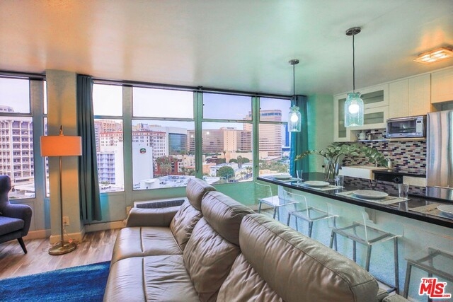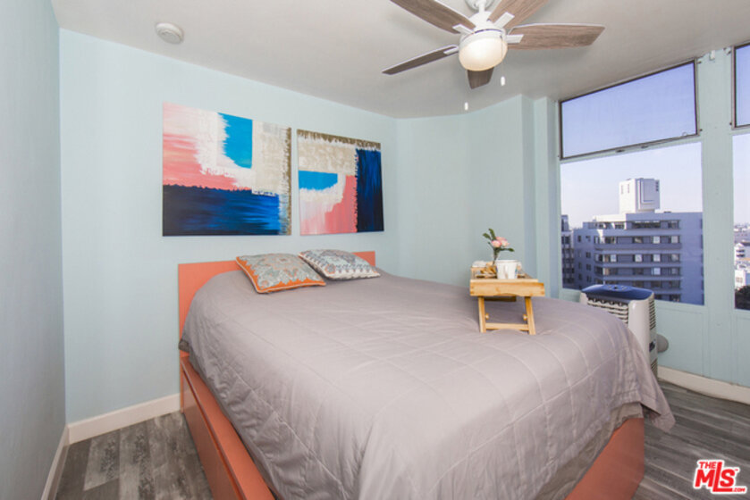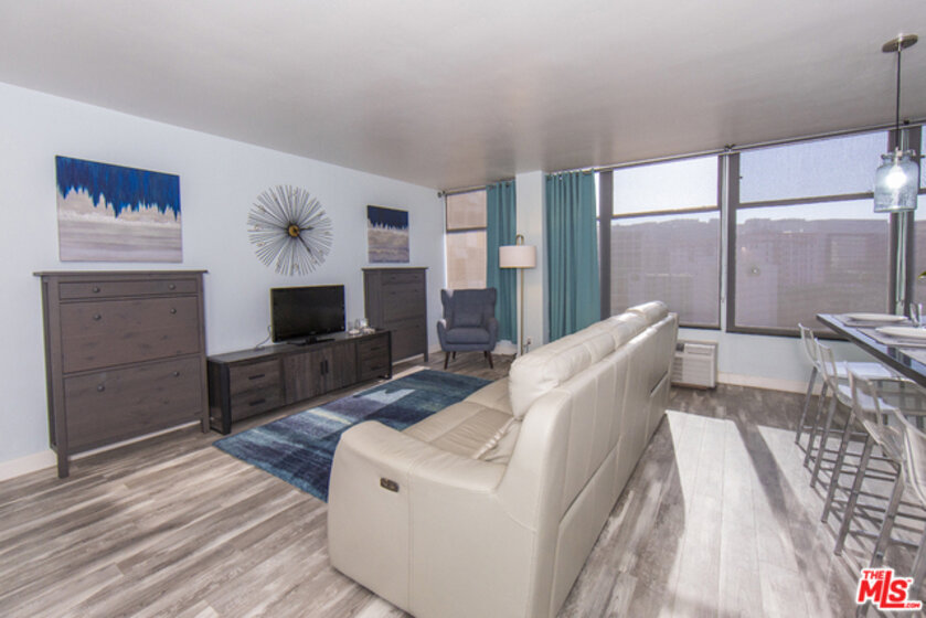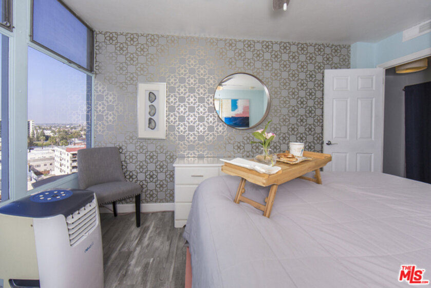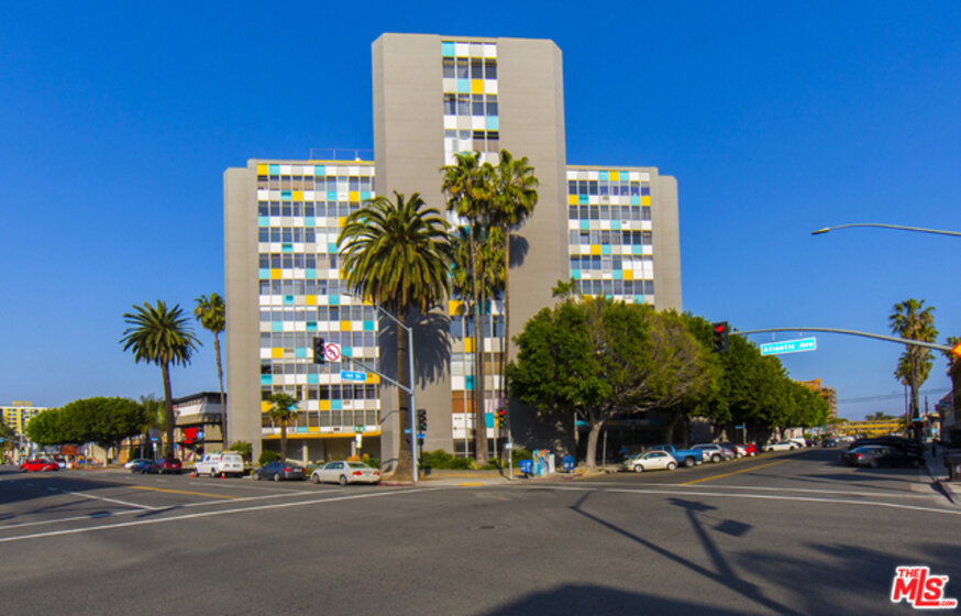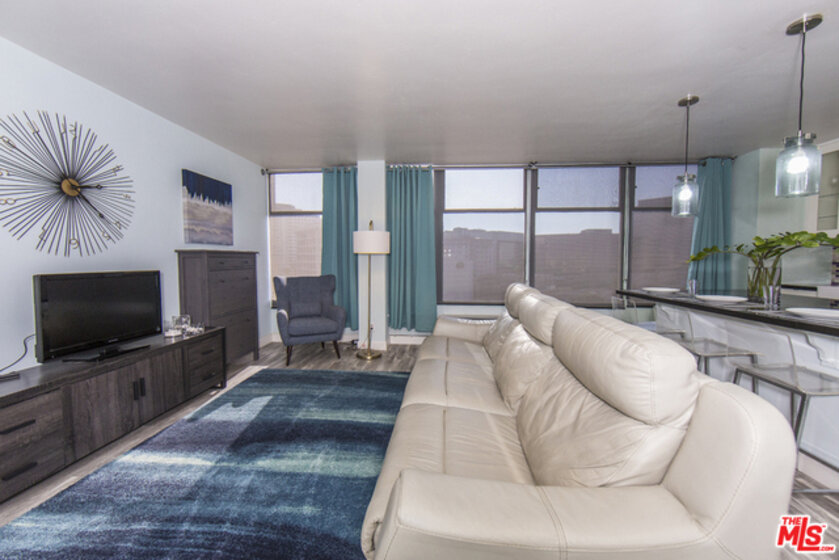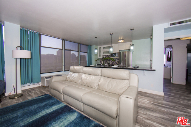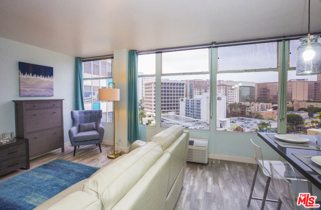 Move-in ready coastal inspired renovated modern home. Floor-to-ceiling-windows in living room & kitchen provides natural light w/ views of the skyline & harbor. Each bedroom has a vista of Long Beach to LA. Streamlined open concept floor plan w/ large kitchen, stainless steel appliances, granite counters, & a peninsula w/ seating. Newer luxury laminate wood floors, in-wall AC unit, built-in storage & workspace. Updated bathroom with contemporary finishes. Home is laid out perfectly for entertaining friends & as a retreat. Located in the heart of highly coveted East Village Arts District near restaurants, entertainment, shops, & the Metro. Minutes from parks, movie theaters, the Pike & Shoreline Village. Walk score of 98. This home provides a unique opportunity to live a few blocks from the coast. Enjoy beach activities & amenities of city living. Secure building with rooftop deck, dipping pool, & strong reserves. Seller offers a $1000 parking allowance towards Buyer's closing costs.