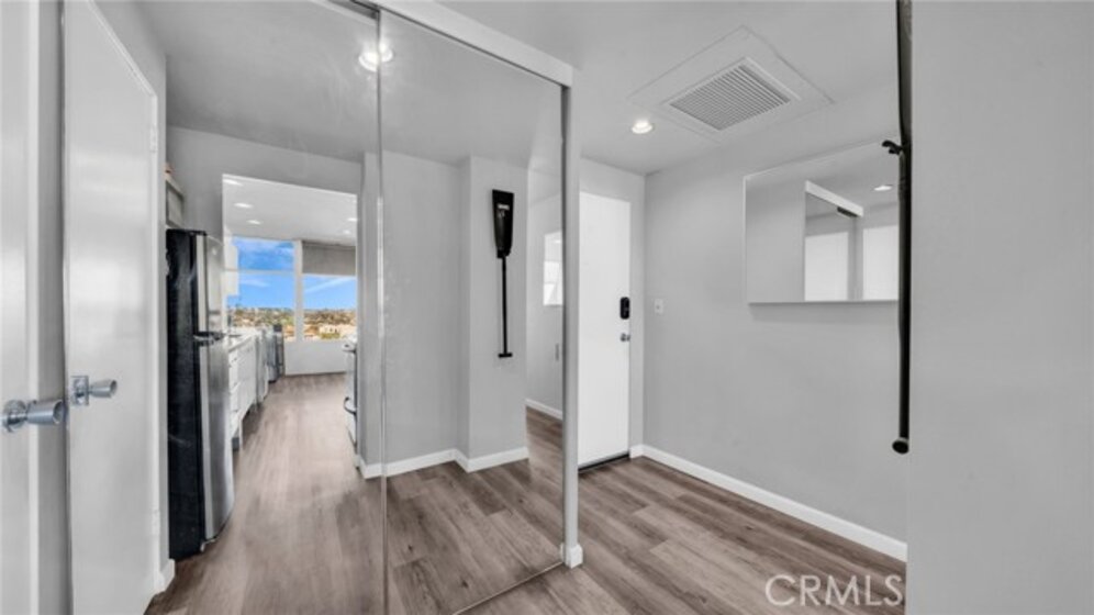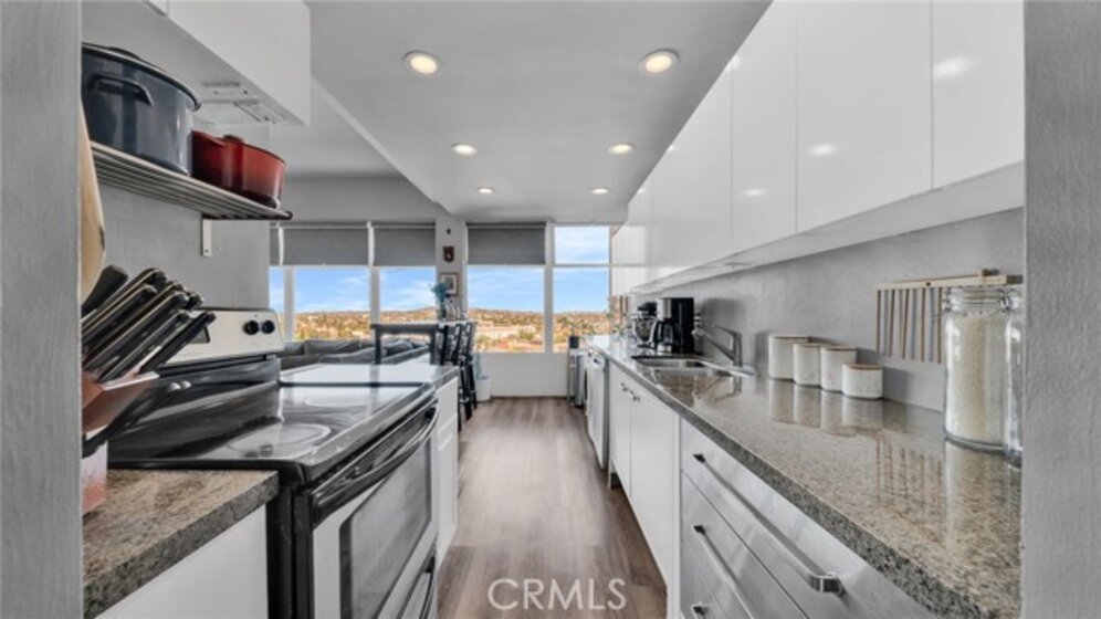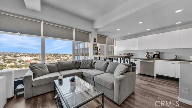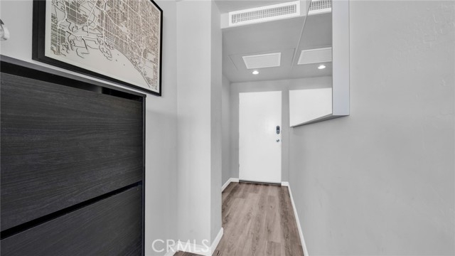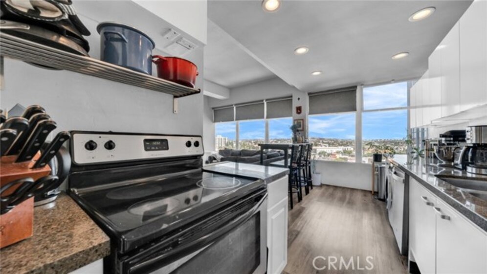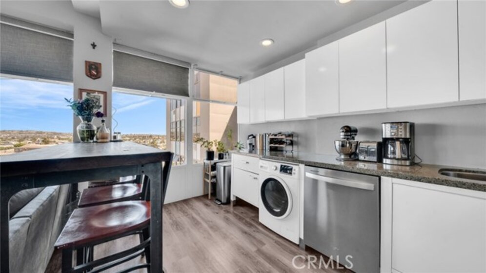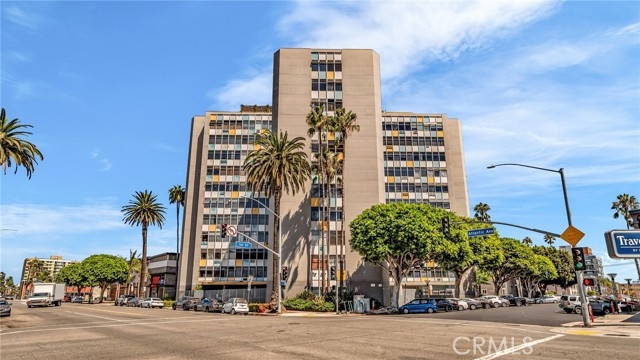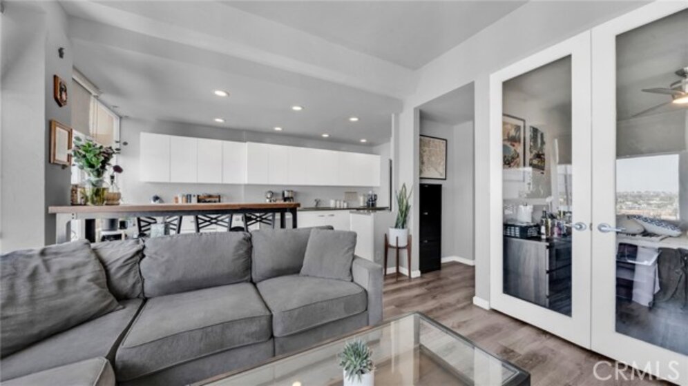 Experience the epitome of beach and urban living with this coveted 9th-floor CITY LIGHTS VIEW residence at the iconic Royal Palms! Nearly 500 sq ft of remodeled space which includes vinyl flooring & smart recessed lighting. This studio unit has been modified to include a separate bedroom space opening to the living room with double French doors. From the living room, enjoy mountain and city light views! The adjoining remodeled chic kitchen features quartz counters, contemporary footed cabinetry, stainless appliances, recessed lights, fridge and stainless drawers & shelving! Upgraded cabinetry in bath along with wand shower head and upgraded fixtures. Built-ins added inside the mirrored closet, plus extra storage in garage area. Royal Palms is a pet-friendly building; and your HOA includes hot & cold water, trash (and trash chute), heat, Amazon drop station, community pool, meeting room, security patrol and on-site management - plus coming-soon rooftop entertainment! You are in the heart of fabulous Restaurants, Shops, Art Galleries, the Performing Arts Center, the Metro, Shoreline Village - AND a hop and skip from the beach! Enjoy the monthly street fairs, art walks, annual Grand Prix and much more!