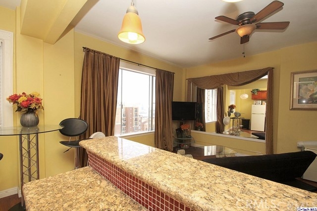 Gorgeous studio condo located in the fabulous building Sovereign in Long Beach! Featuring beautiful flooring and amazing views of the city! Granite counter-tops, bar stool seating and ample amount of cabinet space! This unit also offers a good-sized walk-in closet and a well-lit bathroom with shower over tub and tile back-splash! Even though the building doesn't offer any parking, there's secured & covered parking in the next door building available! The home is only minutes away from the beach, the Aquarium of the Pacific, Queen Mary, and plenty of other places to visit!