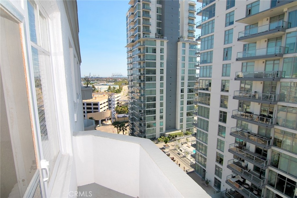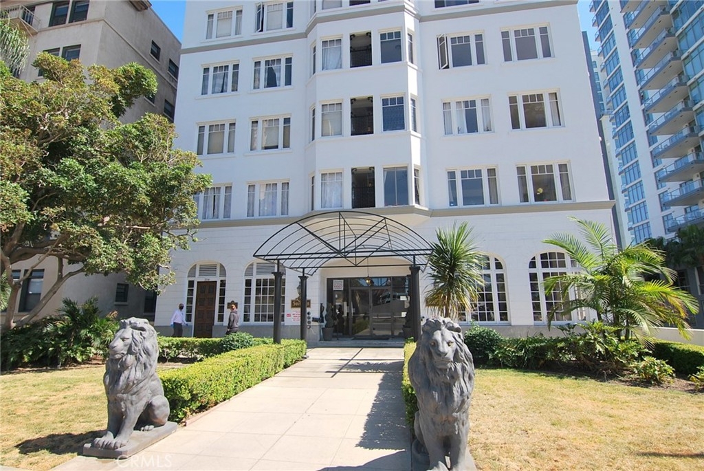 Welcome to the Historic Sovereign Building with Entry Lions leading to unique lobby with on-site Property Manager. Enter thru the Vintage lobby filled with walls of windows, 1920's marble flooring, period furniture & Batchelder Tile Fireplace. Solarium on 12th floor has 180 degree views of the Ocean marina, Queen Mary, large sitting areas, kitchen, a quiet, comfortable library for reading or studying. & outdoor patio for more downtown views. On the 12th floor is the Laundry with his/her restrooms. Outside the laundry room is an outdoor clothesline to dry your linens with fresh ocean breezes. 10th Floor Studio Unit with charming built-ins, vintage kitchen, spacious vintage full bathroom, lots of storage in walk-in closet with built-ins & place to hang your clothes. Door in Living Area that leads to exterior balcony with views to the east and west. Cute eating area in Kitchen. Hardwood Flooring in main living area. Subterranean parking structure next door has available parking spots to rent. This Historic Building is right near Aquarium, Marina, Convention Center, The Pike, Performing Arts Center, Rainbow Lagoon, Shoreline Village, art galleries & lots of night life. High Walkability Rating! If you are looking to experience city living at a truly affordable price, then look no further. Low HOA dues include maintenance, insurance, on-site manager, and all utilities except electricity.