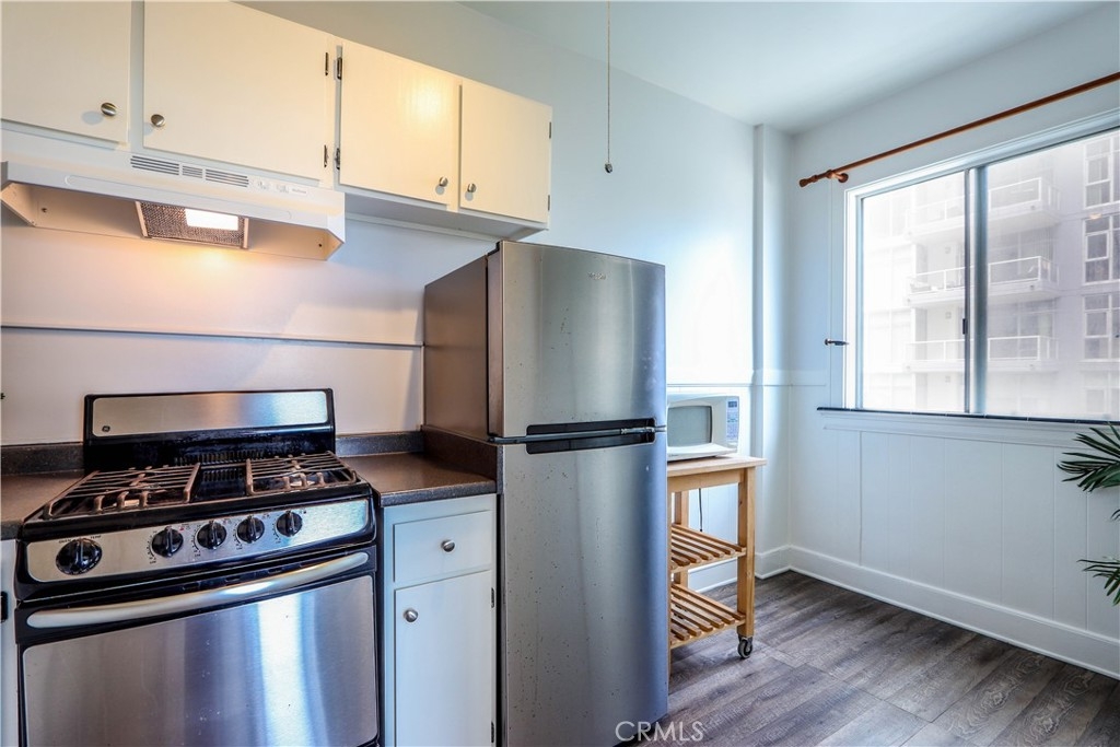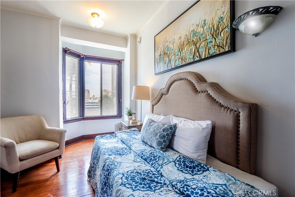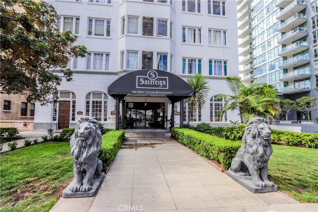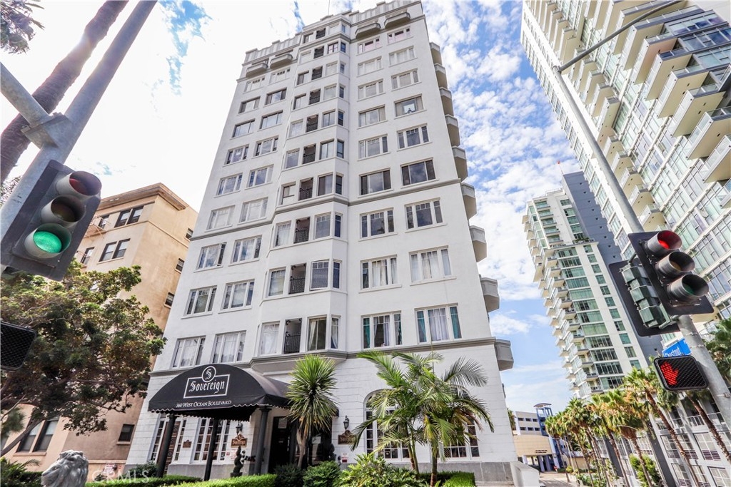 Iconic city views from this turnkey 5th floor corner unit! This spacious condo offers 1 bedroom and 1 bath, hardwood floors, new paint throughout and a re-glazed bathtub and kitchen sink. The kitchen provides a dine-in area for a small table and there is a large walk-in pantry that can also be used for additional storage. The main living area as an abundance of natural light and a small balcony that highlights charming views of Ocean Blvd and peak-a-boo harbor views to the south. The historic 1920's lobby features a Bathchelder tile fireplace, tall octagonal columns and decorative crown moldings. Visit the top floor solarium for panoramic ocean and harbor views. All of this within walking distance of downtown, dining, shopping, aquarium, marina, and convention center!