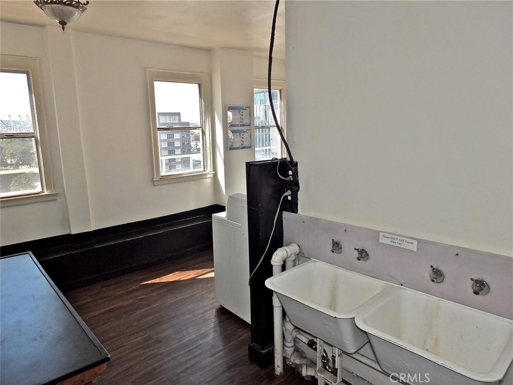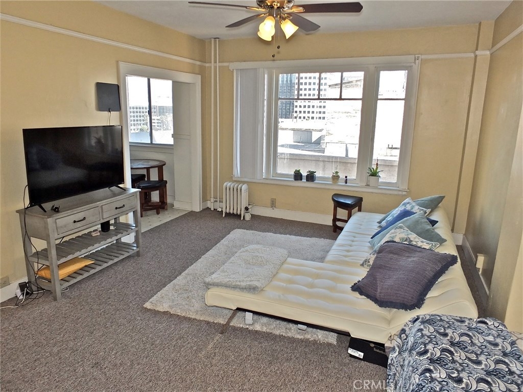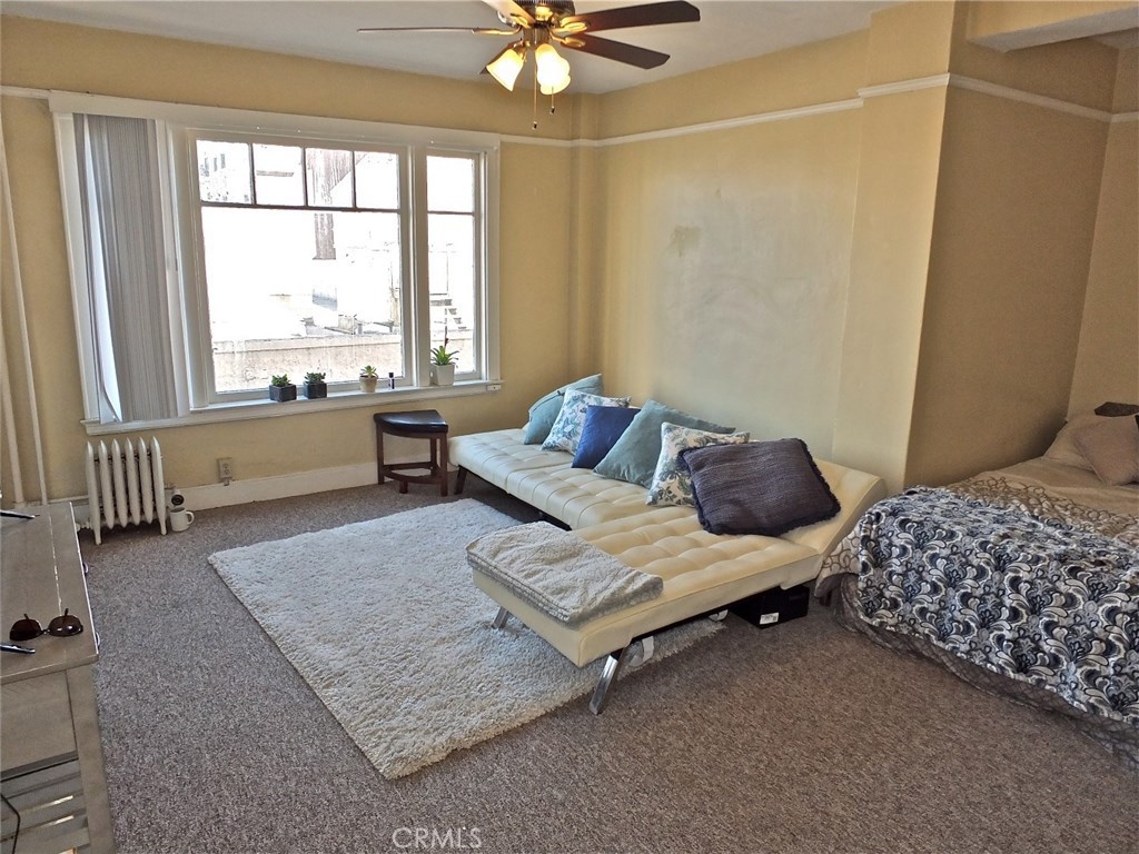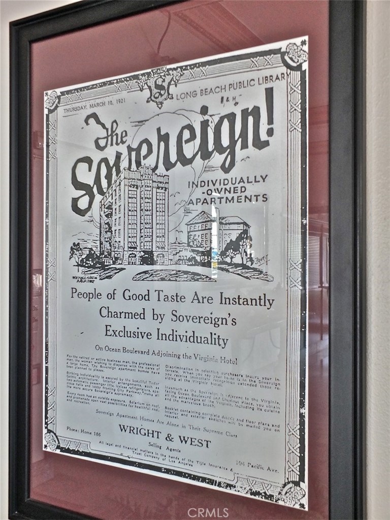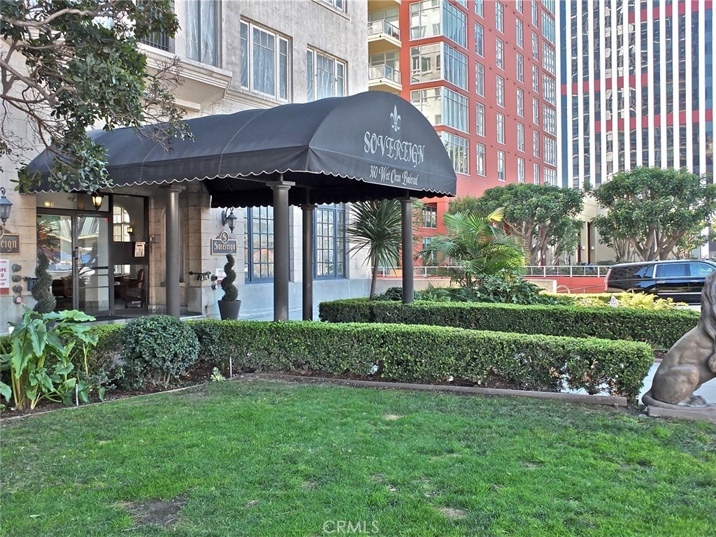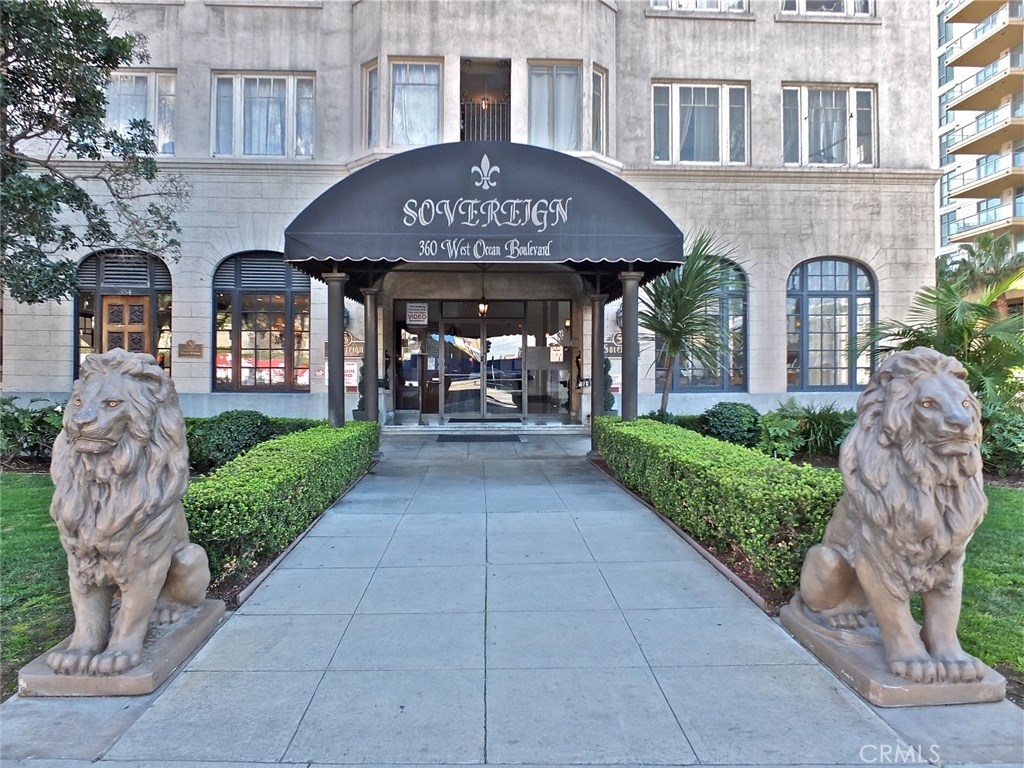 Located in the heart of one of the biggest downtown renovation areas in North America, this large, seventh floor New York style studio condominium is full of natural light and has some ocean view. Nearby are hot new restaurants, cafes, shops, and art galleries, as well as the Aquarium of the Pacific, Convention Center, Terrace Theatre, and much more. The historic Sovereign itself is an Art Deco masterpiece built in the Jazz Era, with a beautiful lobby and top floor Solarium with amazing ocean views as well. The Sovereign has a secured entry with a building manager on site. No Parking in the complex but there is secure covered parking available to rent in structure directly behind the building by permit for approximately $75 per month.