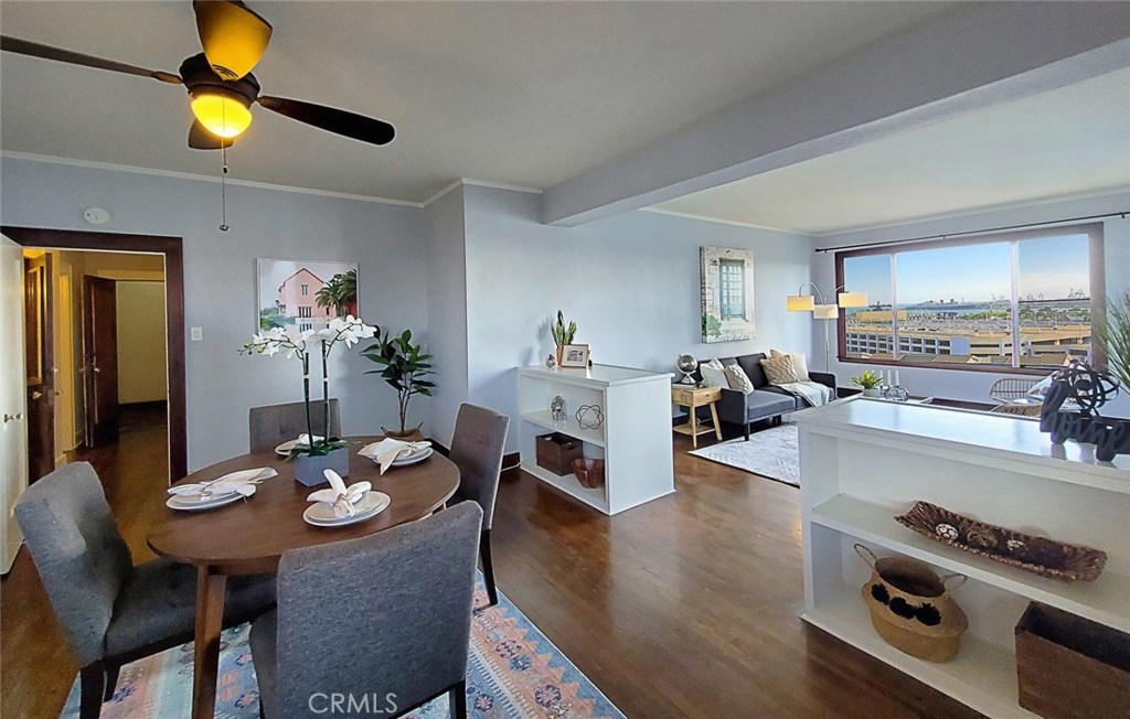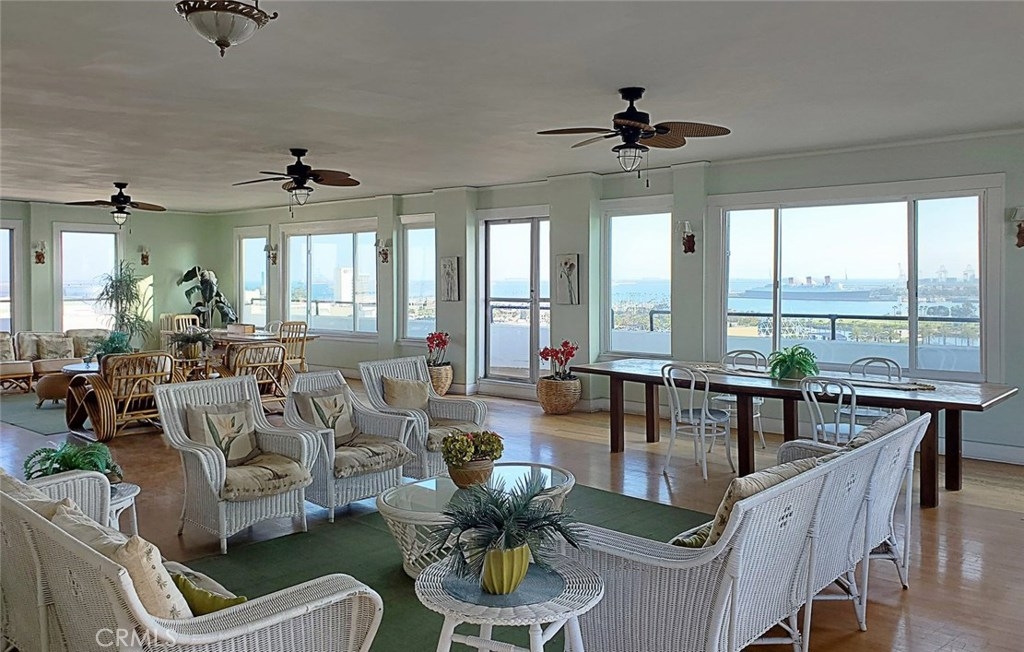 Ocean & Sunset Views!!! Location, Location, Location! Historic Sovereign Building. This gorgeous 9th floor 1 Bed & 1.5 Bath corner unit has an open concept that gives you amazing ocean views from all rooms.. Just imagine waking up to these amazing ocean views and the historic Queen Mary everyday! This unit is impeccable with an updated kitchen that has granite counters, subway tile backsplash, white crisp cabinets, & stainless steel appliances. The custom built-in's all give it that extra charm and is very convenient.. The New paint & large windows gives this unit tons of light from all areas including the master bedroom. Large master suite has two closets. One closet is a walk-in. Master also has a separate desk area with lots of storage space.. The outdoor patio off the living room is great for having that morning cup of coffee or those relaxing evenings watching the sunset! Amazing Community Clubhouse Solarium on the top 12th floor with ocean views! Solarium offers a piano and kitchen for entertaining. Solarium also has a Library for reading, and outdoor patio for more downtown views. This unit is right in the middle of the Aquarium, Marina, and Convention Center. The Pike is located close to the building with shopping, dining, restaurants, beach and night life. Great walkability to everything you need which makes this property very unique! HOA includes on-site manager.. Come enjoy this great lifestyle today!!