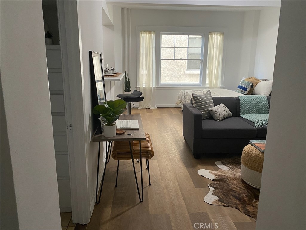 This is one of the big buildings in Long Beach .From the first lobby we go inside the building, stair 1B , go down the A then turn right the room A next to the storage then open the A door and go to inside on the right. Living room and bedroom are one . This condo has been upgraded, new paint inside,new stove ..., white cabinets, new laminate floor in the bed , tile in the kitchen and the bathroom . It close to the beach, the restaurants and much more .