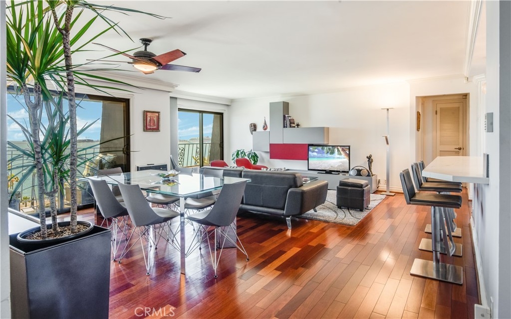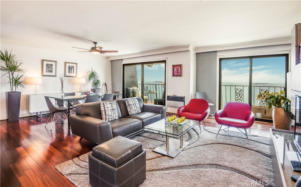 UNIQUE & EXCITING OPPORTUNITY! Welcome home to this top floor Bluff Park PENTHOUSE with unobstructed ocean views from every room. Rarely on the market updated and remodeled two bedroom, two bath penthouse in The Versailles. Enjoy jaw dropping ocean views from the open concept family room/kitchen as well as both bedrooms. This end unit also features sunset views as well as West and North mountain and city lights views to Los Angeles and beyond. Updated dream kitchen looks out to both the ocean as well as the Hollywood sign complete with Wolf range, built in Sub Zero French door refrigerator, Miele dishwasher, osmosis water system, wine service, and island with Calacatta Laza quartz. Master en suite with ocean views, master bath retreat, and walk in closet. Second ocean view bedroom is currently being used as an office. Inside laundry with Miele washer/dryer as well as building laudnry facilities on the floor. Hunter Douglas window coverings throughout, some with automatic/remote feature, new water heater, and hardwood floors. Beautifully maintained building featuring front desk attendant, security doors, pool & spa are adjacent to the Great Room clubhouse with bar, sitting area, TV, and sauna. Gated subterranean parking includes two assigned parking spaces in convenient location. You will feel like you are on vacation year round in this once in a lifetime opportunity!