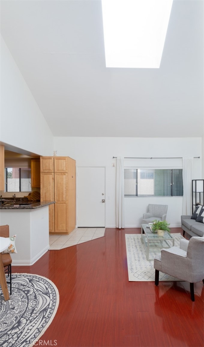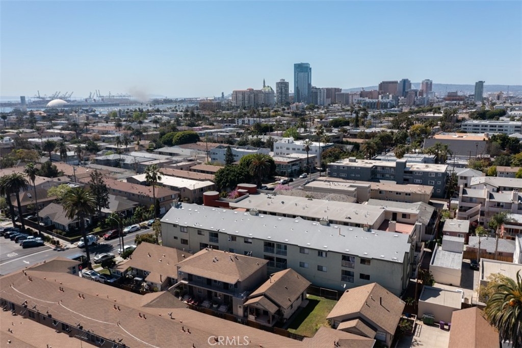 Welcome home to 1449 East 3rd Street! This fabulous topfloor condo with soaring ceilings is perfectly located to enjoy everything Long Beach living has to offer! Close proximity to Retro Row, yoga on the bluff, three blocks from the beach and the farmer's market at Bixby Park. This bright and sunny unit features two bedrooms, two bathrooms with an en-suite primary bathroom and private balcony with views of the treetops. The open floor plan feels spacious and modern with an open galley kitchen with stainless steel appliances, honey-toned cabinets, granite countertops and a breakfast bar. The separate dining area is open to the living room, high end laminate floors elevate the space and the ample windows and skylight provide an abundance of light throughout. This home features inside laundry, two parking spaces and storage! A clever hidden access to the private attic area provides another enormous storage area, or can be converted to a loft mezzanine that can be used as an office or additional flex space.
