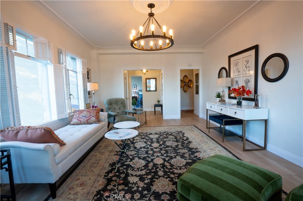 Stunning Terrace Corner Unit highly sought after The Villa Riviera, Long Beach’s Most Iconic Historic Landmarks. This Large One Bedroom One Bath unit is One of Only Six Terraces in the building & large enough To entertain! Peek of the Ocean from living and bedroom! A formal entry invites you in with plank style high end vinyl wood flooring throughout & a sweeping open flow from one room to the next. Galley Kitchen fully remodeled w/ newer appliances & custom cabinets, subway tiles & updated historical applications. Original Deco tile in bath, pedestal sink & Sloan commode. Incredible Unit is bright & Sunny with Abundance of Natural Light. The numerous windows Let the breezes from the Ocean are invigorating. Bedroom has two separate walk-in closets. The HOA Fees Include All Utilities, gas, electric, water, heat, Cable TV & Internet. The Building 24 Hour Security, Ballroom, Direct Beach Access, Roof Top Deck Complete w/ Cabana & BBQ & Overlooks the Beach & The Pacific Ocean. From the moment you enter the doors of the Villa you step into a 1928 masterpiece. The Amenities Include a Spectacular Grand Circular Ballroom With Vaulted Ceilings, A Guest Suite for your overflow guests. This building enjoys the “Mills Act” Which provides owners an opportunity for Savings on Property Taxes. Don’t Miss The Opportunity To Live In One of Long Beach’s Landmarks And Enjoy The Beach, Shopping, Great Restaurants, The Pike, The Aquarium And The Art District. Live Your BEST LIFE At The Villa!