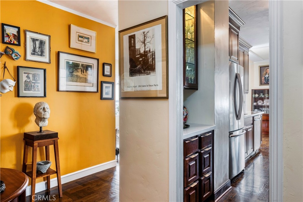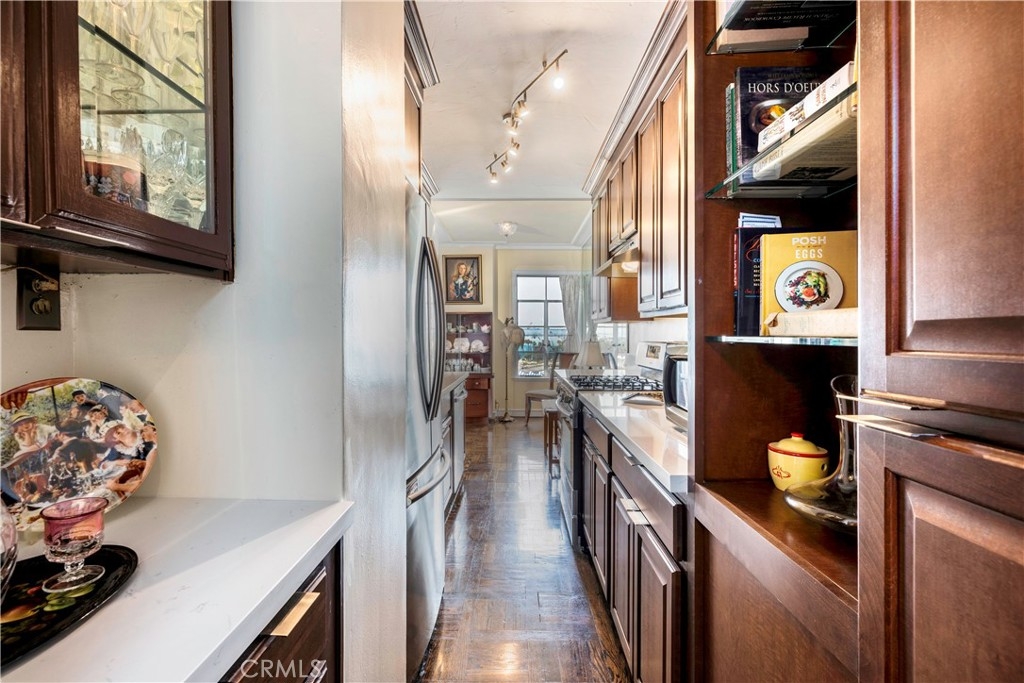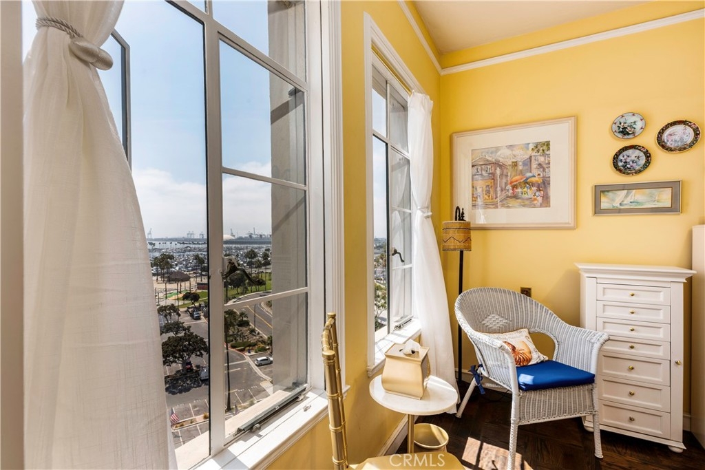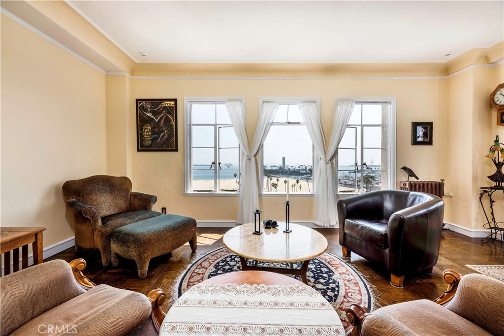 Panoramic Ocean Views!! Highly sought after two bedroom two bath corner unit home with full Ocean and Marina views from each room as well as a partial view of the city lights. This condo is located in the Historic Villa Riviera and has been meticulously updated while preserving its historic integrity. The upgrades include but not limited to newly remodeled kitchen, fresh paint, appliances and light fixtures. The original dark hardwood floors throughout are in great condition and set in a parquet style allowing for a subtle textured pattern. All window sills and frames were repainted in 2020 as well as the majority of the home in 2021. The modernized new kitchen blends perfectly with the feel of the home and allows for modern conveniences, including new cabinets, quartz countertops, sink and stainless steel appliances. The spacious living room with high coved ceilings and triple windows is light and bright. Enjoy a birds-eye view of the Long Beach Grand Prix and watch the excitement of hairpin Turn 11 from the vantage point of your own living room! There are two options for dining, one large area off the living room with a picture window view of the RMS Queen Mary and the Marina or dinette space off the kitchen, both allowing for entertaining with larger format tables. The bedrooms are spacious and have en-suite baths. The main bedroom has ample storage and incredible ocean views. The bath has been updated with era appropriate finishes, but still retains the original pedestal sink and Sloane commode. The guest room/study is a large room with ample storage within a newly remodeled closet with mirrored doors. This is the perfect retreat for reading or for hosting overnight guests. The en-suite bathroom has the original Deco tiles as well as pedestal sink and Sloane commode. The Villa Riviera is on the National Register of Historic Places and is an icon in the City of Long Beach. Long Beach is ranked one of the most walkable cities in the nation and you will see why as you stroll to the many restaurants downtown, Shoreline Village, the Aquarium of the Pacific, or to the East Village Arts District to enjoy the Art Walk as well as restaurants, wine bars and coffee houses. You can also walk or bike the 7 mile Alamitos Beach bike path. There are many extras you will discover as you tour this home!