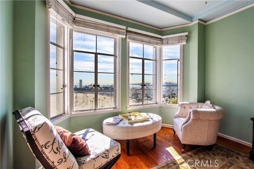 Beach Front Historic Icon the Villa Riviera w/ Sweeping Front Row Ocean Views. Step inside the charming 1 bedroom 1 bath unit updated & move in ready. Hardwood floors throughout main living, hall, entry & bedroom area w/ lovely Travertine in kitchen & dining area. Plaster walls with high cove ceilings. Bay windows French mullion features. Light & Ocean views from every room. Beyond abundant closet space. The bathroom is original 1928 Deco style with gold & black tiles, pedestal sink, deep cast iron tub. The Villa Riviera is an award wining landmark built in 1928 and enjoys the status of being on the National Register of Historic Places as well as other accolades from the Los Angeles Conservancy & the State of California Historic Preservation group to mention a few. The building sits on the edge of the waterfront and has direct beach access. Conveniently walk-able to many shops, restaurants, entertainment such as theater live & film, Aquarium of the Pacific, or even a stroll or bike ride on the right out your door 7 mile bike path.(walk score 91). A great lifestyle awaits! The building hosts a ballroom, bike storage, roof deck recreation of BBQ, Fire Pit, Gazebo & games. There is a Ballroom for events w/ a kitchen for food prep or catering. An affordable guest suite for company. The HOA Fees include all the utilities including gas, electric, water/hot water, heat, Cable TV and Internet. Ask about the Mills Act for incredible tax savings when you own in the Villa Riviera