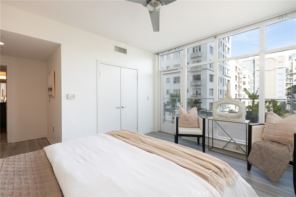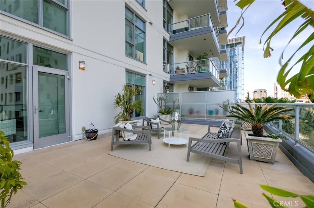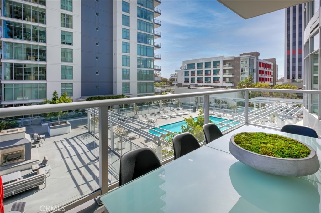 When you walk into this luxury condo you will be welcomed with a resort-type feeling through the floor-to-ceiling windows. Owners at West Ocean enjoy the convenience and excitement of Downtown living at Long Beach's ultimate, exclusive urban high rise. But, in this lovely condo, you will be surrounded by palm trees, a perfect view of the pool, and the outside fireplace. Many areas to enjoy the outside from you balcony AND your amazing RARE large outdoor patio. There is so much outdoor space that you will feel like you are living in your own resort. There are only a few of these large patios in the building which allow you to have a private propane BBQ. There is also a separate area to set up a home office with plenty of space. You will enjoy a community lifestyle defined by stunning lobby, 24/7 concierge service, swimming pool & spa, deck dining al fresco in the BBQ area. Other luxury amenities include a sauna, well appointed fitness center, theater/media room, wine storage, lounge/game room with fireplace, business/meeting center. Fine dining, entertainment & shopping is right in your neighborhood. This home features walls of windows in the main living area and master suite and bedrooms! Exclusive privacy with only 6 neighbors on this level. Stunning interior upgrades include: newer flooring, stainless kitchen appliances, a large breakfast bar and upgraded carpet in bedrooms, custom window shades, granite counter tops, real wood cabinetry and more! Another exceptional perk is that you get a private storage room with this home, and two side-by-side parking spots! This is a one-of-a-kind condo at 400 West Ocean that you will fall in love with.