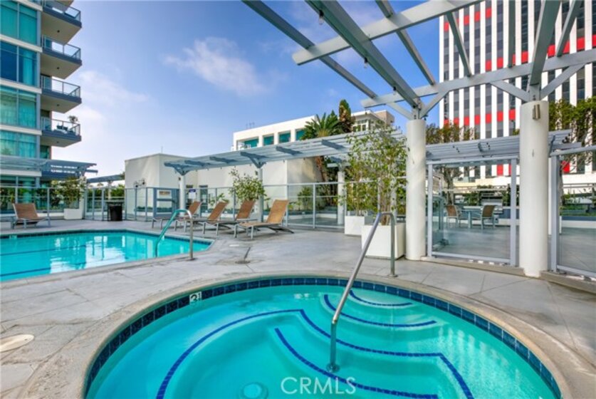 411 Seaside Way is part of the West Ocean Association which is Downtown Long Beach's ultimate urban luxury high-rise residence. Enjoy amazing views from your floor-to-ceiling windows overlooking the neighboring pool. You will also love the palm trees blowing in the breeze coming off the ocean. This condo offers 2 bedrooms. A wonderful feature of 411 Seaside are the floor-to-ceiling windows that provide you with the beautiful scenery and privacy at the same time. Custom window shades and blinds throughout, inside laundry, RARE private storage and 2 parking spaces. Other upgrades include beautiful hardwoods in the entry hall, living room, and dining areas. Open gourmet kitchen has granite counters, gas burner stove, electric oven, stainless fridge, dishwasher, microwave and breakfast counter. West Ocean offers pool/spa area, multiple fitness centers, billiard room, business center, multiple lounge/lobby areas, outdoor BBQ Area, library, guest suites for visitors/family, and climate-controlled wine storage. Enjoy the short walking distance to an amazing array of restaurants, Friday Farmer’s Market, Shoreline Village, The Terrace Theatre with the dancing water fountains, The Pike Outlet and Cinema, East Village Arts District, Convention Center, the metro and the beach. Downtown Long Beach offers a variety of annual events such as the Grand Prix, Festivals at Rainbow Park, Pine Avenue Food Fest, 2 minute ride to the Queen Mary island and the Carnival Cruise Line. There is no other place like this wonderful City by the Sea.