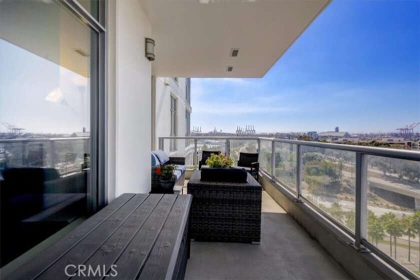 Resort living in the City... This stunning two bedroom unit is move-in ready and blends city-life convenience with a charming beach lifestyle and delivers gorgeous views day and night. The open floorplan showcases a modern kitchen with granite counters, subway tile backsplash and stainless steel appliances that opens to the living space. The living room has tile floors and lots of light. A wall of floor to ceiling windows showcases city lights, the port and the evening light show courtesy of the new bridge. The shades throughout the condo are Lutron Serena shades. They can be controlled with an app on your phone so that they can change settings throughout the day, and you can also control the height of the shade through an Amazon Echo. The Primary bedroom enjoys the same stunning view and has an updated ensuite bathroom with double vanity. The spare bedroom provides one more view to the scenery and has access to the second bathroom in the hall. The living area has access to an oversized private outdoor space that is ideal for enjoying the sunset or outdoor dining. Central AC, inside laundry and two spaces in the secure parking garage round out this beautiful unit. Located in DTLB, close to the beach, trendy restaurants, public transportation, the convention center and the Courthouse. The community fee offers you the luxury of 24 hour concierge, outdoor fireplace near the heated pool, BBQs, a sauna, 2 gyms, theatre room, game room, business center, bike room, and a guest suite you can rent for visitors.