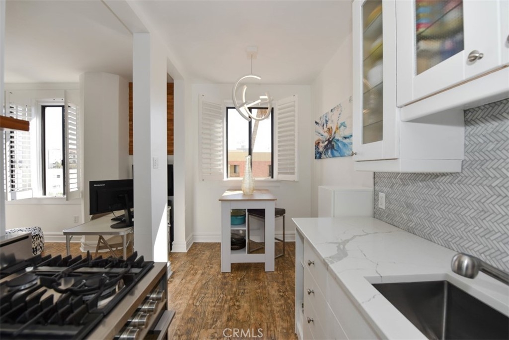 Updated studio unit for sale in The Willmore Building downtown Long Beach. Renovated and modern finishes. Newly painted, new engineered hardwood cedar floors, new closet doors and hardware, updated kitchen with new Quartz countertop and backsplash, Fisher and Paykel range and European style Refrigerator with bottom freezer, upgraded lighting, plantation shutters, renovated bathroom cabinetry with plenty of storage space, and custom built cabinetry and shelving added in the closet area. Bedding area is separated from rest of the unit and very private. Option to purchase all furnishings and artwork. HOA is only $364 month and covers ALL UTILITIES The Willmore Condo is an Italian Renaissance Revival building built in 1925 and originally used as a luxury hotel and then converted to condo units. The L-shaped building consists of and 11 story north witng and 10 story west wing. The building offers a rooftop deck with amazing views of the downtown Long Beach Skyline, Queen Mary, and ports of LA and Long Beach. Solarium which is available for private functions, bike storage room, storage lockers, laundry room, on-site concierge manager, and front door intercom. Off the lobby is the award winning La Traviata Italian Restaurant. Building is pet friendly and unit is available as an investment property (HOA to confirm rental availability and requirements).