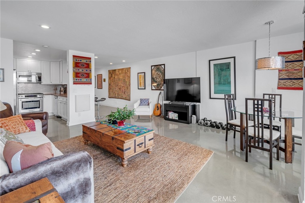 Welcome to paradise by the beach! This stunning condo offers the epitome of coastal living with direct beach access and mesmerizing views of the iconic Queen Mary and Marina. Fully upgraded and thoughtfully designed, this home exudes modern elegance and comfort. Step inside to discover polished concrete floors that complement the open concept layout, creating a seamless flow from room to room. The kitchen is a chef's dream, featuring top-of-the-line Bosch stainless steel appliances and a convenient breakfast bar, perfect for casual dining or entertaining guests. The bathroom has been fully upgraded with tiled walls, bathtub and a custom-made glass sliding door. Nestled within the building complex, you'll and array of amenities that include a pool & spa, and a community clubhouse complete with a sauna. The unit comes with 2 assigned parking spaces and 2 large lockers for extra storage.