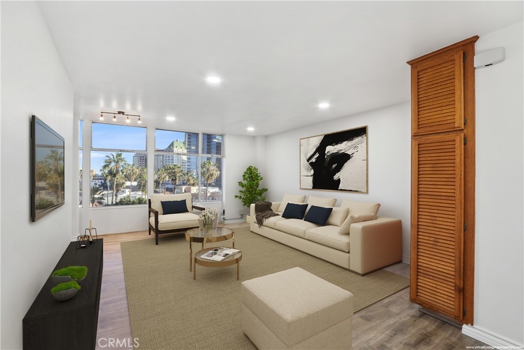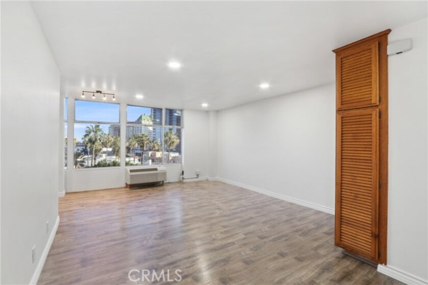 Welcome to urban coastal living in the heart of downtown Long Beach.Come make this condo your own!!! lowest price for a 2-bedroom in the building... This light-filled 2 bedroom, 1 bath condo offers an open living space framed by city skyline views and a delightful peek-a-boo water view. The living room flows to a dining area perfect for entertaining, while the kitchen features an efficient layout, all with wonderful views.. Both bedrooms are comfortably sized; the primary enjoys natural light and easy access to the bathroom. Hardwood/laminate flooring runs throughout the main areas, convenient building laundry, You can add laundry to your unit. Steps from restaurants, shops, nightlife, and transit — ideal for commuters or anyone who wants a true downtown lifestyle with occasional coastal breezes. Low-maintenance condo living with community amenities (secure entry) and just minutes to the waterfront and Shoreline Village unit #609