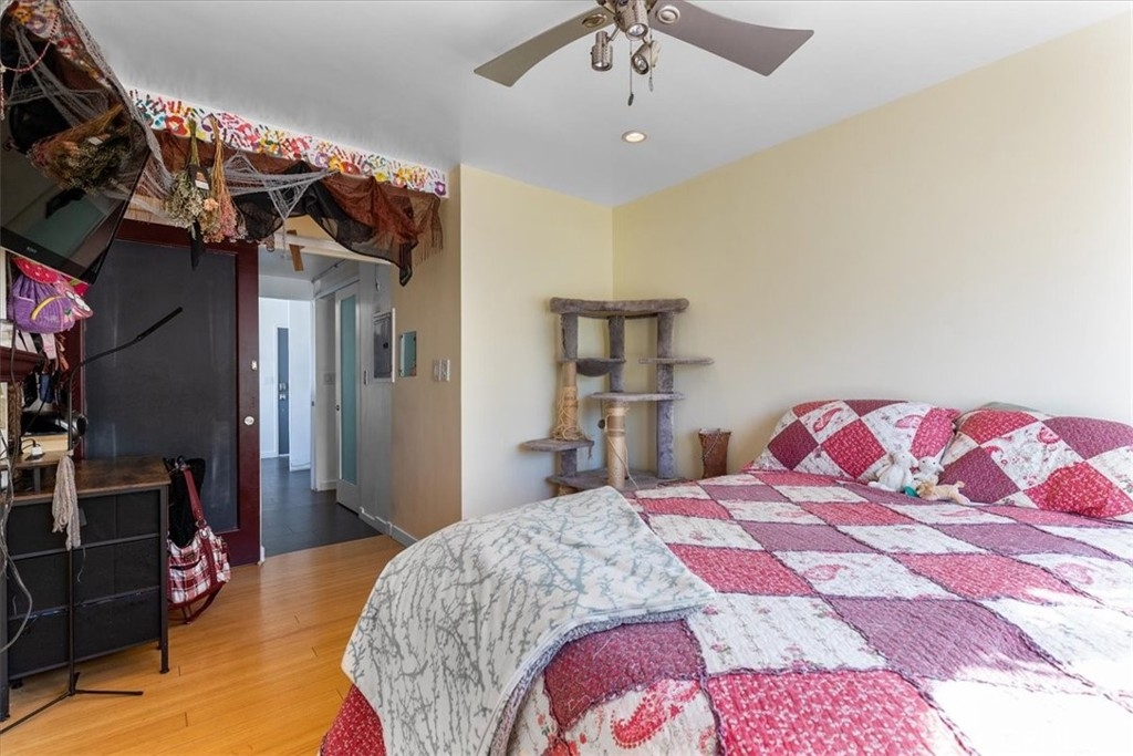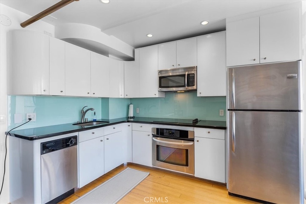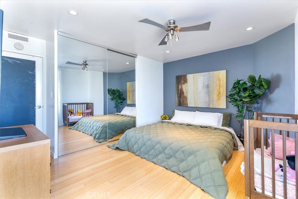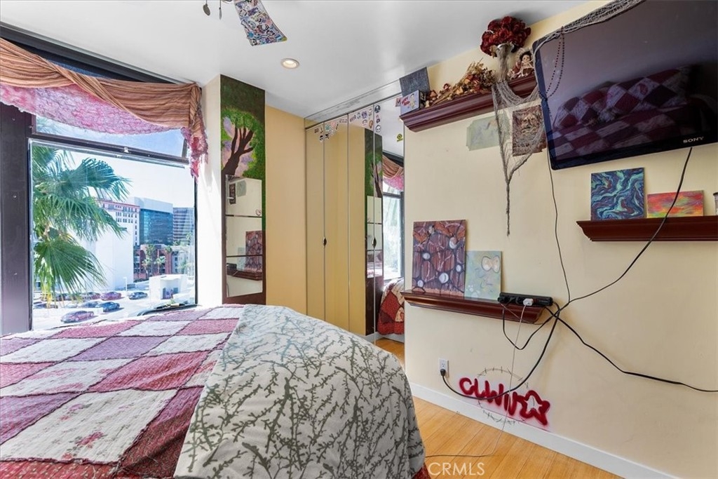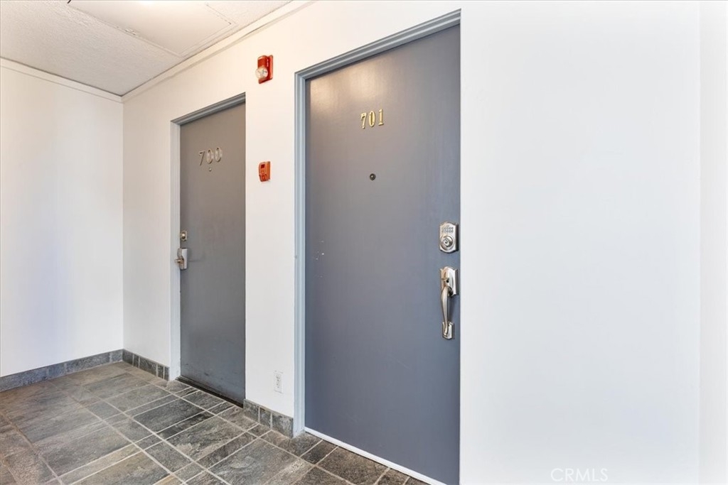 Welcome to this stylish mid-century modern condo in the heart of Downtown Long Beach! Located in the iconic Royal Palms building, this 2-bedroom, 1-bath residence offers 820 sq. ft. of thoughtfully designed living space with sweeping city views and a peek-boo view of the Queen Mary through oversized windows that flood the home with natural light. This is a end unit with only one shared wall. Seller also has an ASSUMABLE FHA loan with a 2.75% rate with approximate balance of $360K. Seller is willing to consider loan assumption. Step inside to find an open-concept floor plan featuring a modern kitchen with sleek cabinetry, granite countertops, glass backsplash, stainless steel appliances, and ample storage. RARE IN UNIT LAUNDRY! The spacious living and dining areas create the perfect space for entertaining or relaxing while enjoying the skyline views. Both bedrooms are generously sized, with the primary suite offering plenty of room for a retreat. The bathroom has been updated with a modern vanity, Full slab granite shower-tub combo, and vessel sink. This pet-friendly community includes 24 hour surveillance and an elevator with secure access required after hours, a refreshing pool, outdoor lounge areas, BBQ space, and laundry facilities. Perfectly situated on the corner of Atlantic Avenue and 1st Street, you’re just moments away from the beach, Shoreline Village, Pike Outlets, coffee shops, and award-winning restaurants. Easy access to public transportation and major freeways makes commuting a breeze. With its unbeatable location and vibrant downtown lifestyle, this condo offers the perfect blend of comfort and convenience.