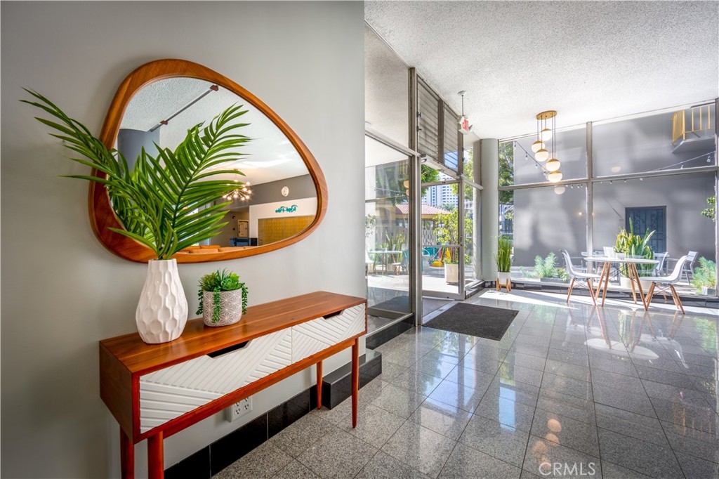 Take the elevator to the 11th floor (TOP FLOOR) and walk in the door to your very own private beach retreat! You are immediately greeted by the wall-to-wall windows boasting expansive views both day and night. During the day you can see Los Angeles, Palos Verdes, the Hollywood sign and snow-capped mountains. By night, your windows are filled with sparkling city lights and it's so close you feel like you can touch them, it's magical! For added privacy, this is an end unit condo with only 1 neighbor sharing your hallway and nobody above. As you walk in the door you are greeted by a remodeled space with beautiful laminate flooring and an open concept kitchen with a full suite of beautiful stainless steel appliances, beautiful newer contemporary cabinetry and quartz countertops. The hallway has ample closet and storage space and leads to a contemporary bathroom and 2 spacious bedrooms. All, with wall-to-wall windows and views. Just adjacent to your door, walk up 1 flight of steps and you are on a rooftop deck with panoramic views, take a glass of wine or cup of coffee with you? Steps outside your door is home to top rated cafes, bakeries, coffee shops, grocery, micro-breweries, Pine Avenue, Outlet Shopping, cycling lanes, bike share program, shopping and all of the urban excitement that is Long Beach! The Royal Palms offers a swimming pool, controlled access, 24 hour cameras, a staffed lobby, rooftop observation deck with views to Orange County, the Santiago Peak, to Los Angeles, the coastline and beyond. Monthly HOA dues of $491 pay your water, hot water, trash, sewage, heat, professional property management, swimming pool, building insurance, onsite laundry room and a staffed office in the lobby. Welcome home to 100 Atlantic Avenue #1108, this could very well be your new home!