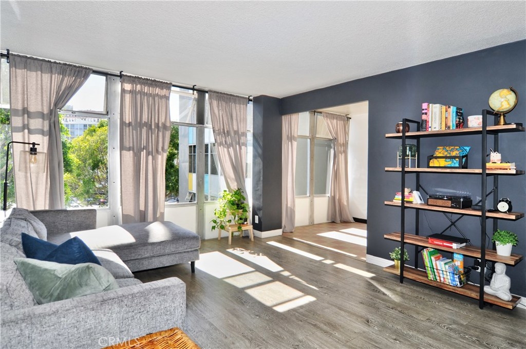 Chic living in this downtown Long Beach studio. A wall of windows greets you with tree tops for privacy and city views above. This condo has a trendy loft like feel with light gray washed laminate wood flooring and slate gray walls. The home has an easy flow that creates a spacious feel. The kitchen is charming with the original features. Minutes from everything: shopping, groceries, restaurants, the downtown nightlife and best of all the beach. With a WalkScore of 97 and the train station and freeways nearby, any way you decide to commute it will be a breeze. The Royal Palms is a secure building with onsite laundry, a pool and plenty of places to lounge throughout the complex inside and out. Hurry this won't last long! FHA APPROVED. Back on the market subject to cancellation of existing escrow.