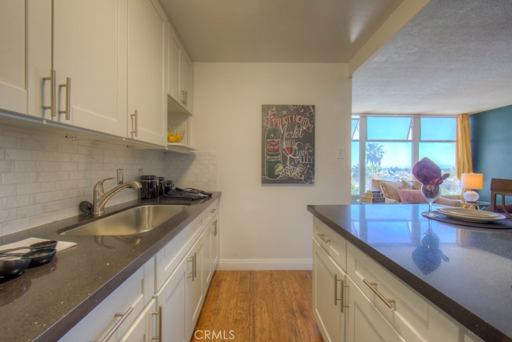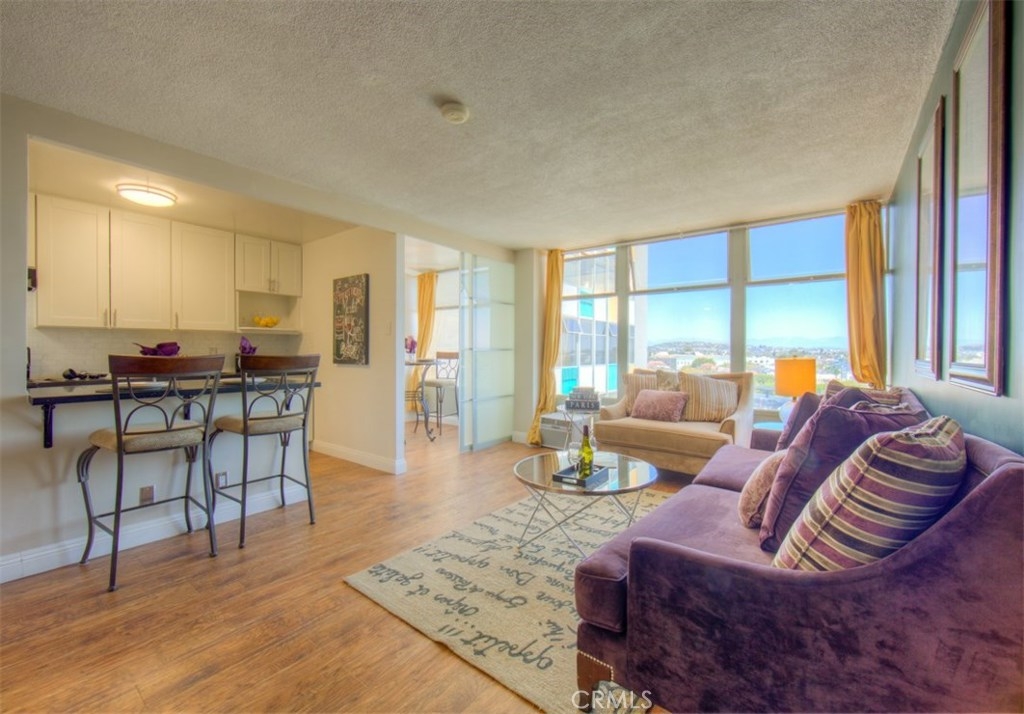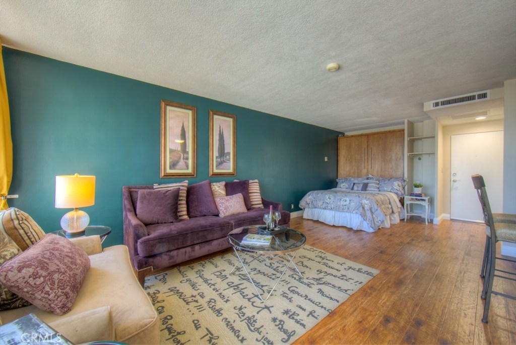 This remodeled studio is perched on the 6th floor and has expansive city views and beautiful city lights at night from wall-to-wall windows. Fresh paint, laundry hookups, air conditioner, wood laminate, newer designer shower doors, high rainfall shower head, upgraded lighting, stainless steel refrigerator, granite countertops and loads of closets really showcase a fantastic use of space. In the bedroom area is very nice Murphy bed and just outside the bath is wardrobe space, laundry hookups and built in cabinetry. There is a separate area for dining that could also be used as a home office space or computer room. The Royal Palms boasts a sparkling swimming pool and your pet is certainly welcomed (size restrictions apply). Very reasonable HOA dues of only $264 pay for your water, hot water, heat, trash, sewage, onsite management, building insurance, landscaping, nightly security patrol and onsite management! The WalkScore is 96 - just outside your door is home to some of the best cafes, coffee shops, bakeries, grocery, art galleries, the beach, Long Beach Bike Share, Cider house, Wine District, Thai District for you to explore, entertain guests and enjoy. Parking is assigned via the HOA and is a waiting list. In the meantime, monthly parking permits are available in lots that surround the building and range from $45-$140 monthly. Welcome home to 100 Atlantic Avenue #611, we're sure you'll love it here.