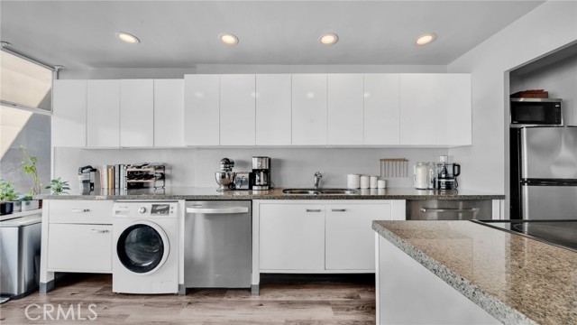 Experience the epitome of beach and urban living with this coveted 9th-floor CITY LIGHTS VIEW residence at the iconic Royal Palms! Nearly 500 sq ft of remodeled space which includes vinyl flooring & smart recessed lighting. This studio unit has been modified to include a separate bedroom space opening to the living room with double French doors. From the living room, enjoy mountain and city light views! The adjoining remodeled chic kitchen features quartz counters, contemporary footed cabinetry, stainless appliances, recessed lights, fridge and stainless drawers & shelving! Upgraded cabinetry in bath along with wand shower head and upgraded fixtures. Built-ins added inside the mirrored closet, plus extra storage in garage area. Royal Palms is a pet-friendly building; and your HOA includes hot & cold water, trash (and trash chute), heat, Amazon drop station, community pool, meeting room, security patrol and on-site management - plus coming-soon rooftop entertainment! You are in the heart of fabulous Restaurants, Shops, Art Galleries, the Performing Arts Center, the Metro, Shoreline Village - AND a hop and skip from the beach! Enjoy the monthly street fairs, art walks, annual Grand Prix and much more!