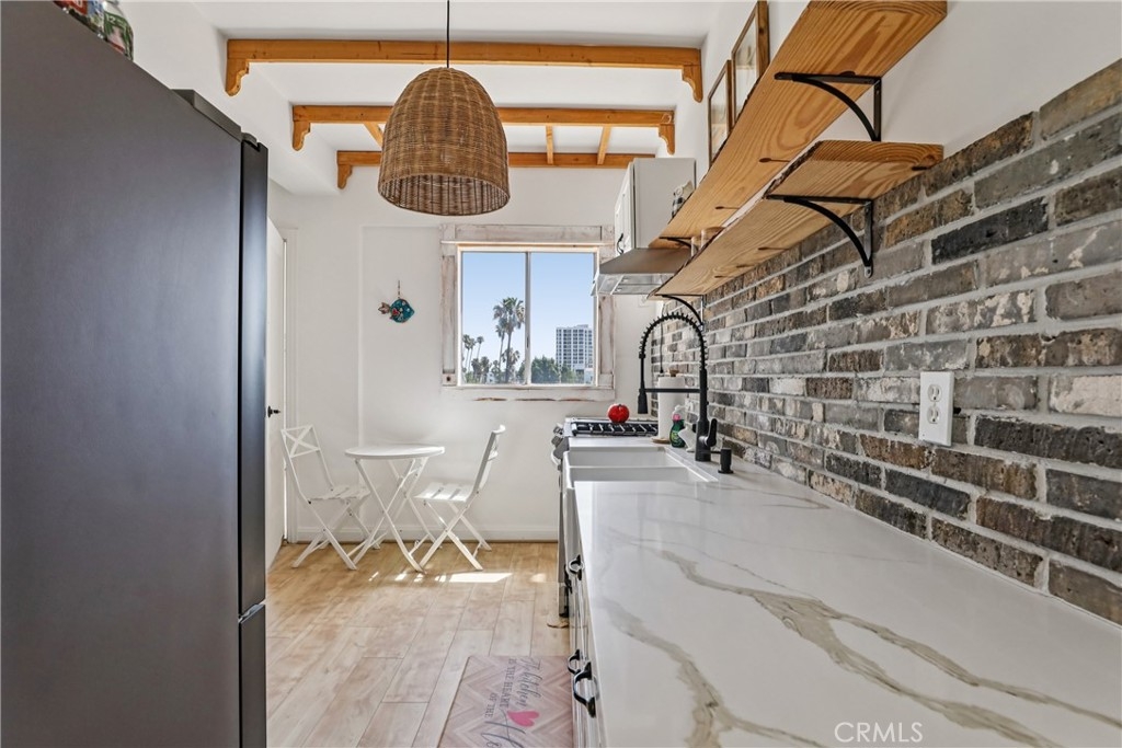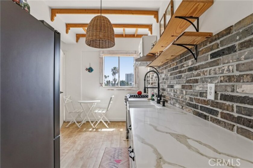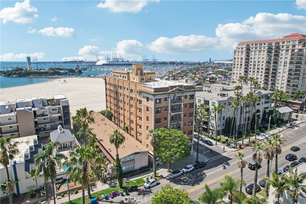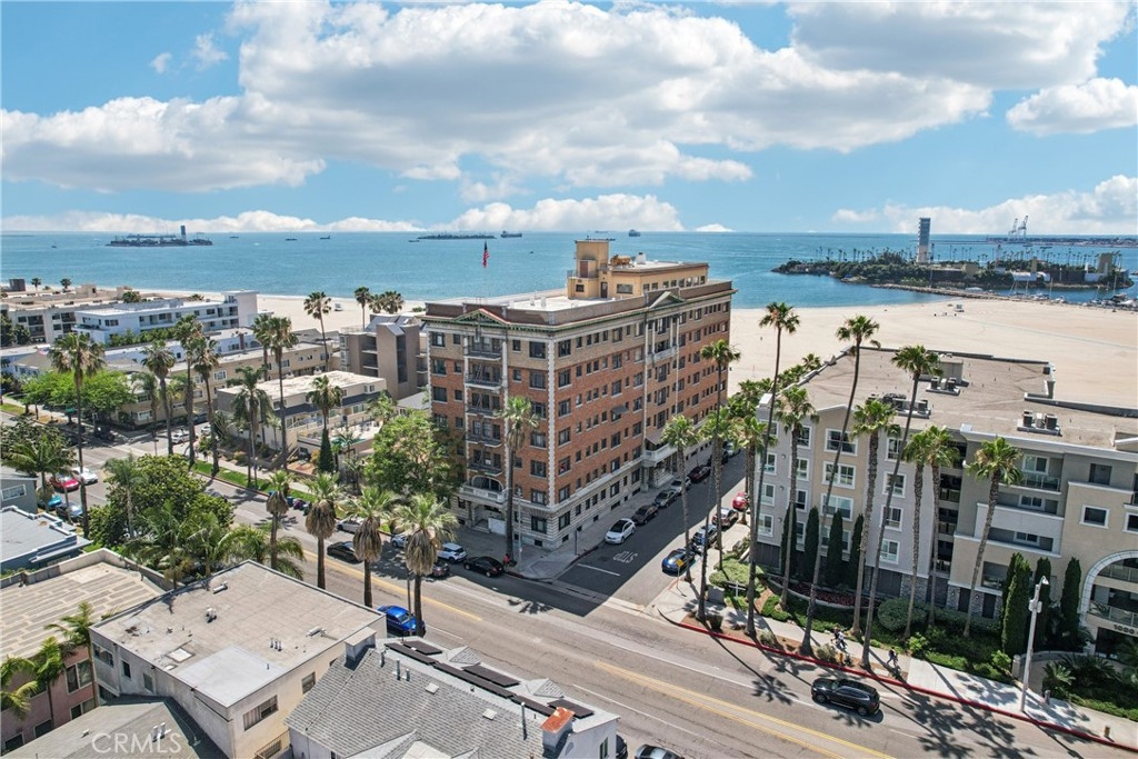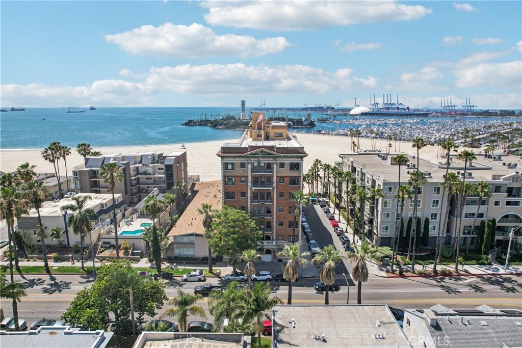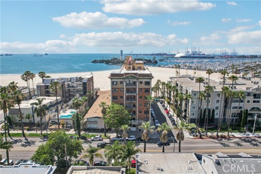 Tastefully renovated condo in the Historical 1922 Saint Regis Building with spectacular ocean view and just a few steps to sandy Alamitos Beach. Quiet 4th floor end unit. High ceilings, many windows, bright and airy, offering beach community lifestyle. Walk-in closet. Cozy isolated eating area. Magnificent ocean views from the oversize bedroom. This beautiful historical building has been used in commercials and movies. Owner is an artistic professional interior designer, turning this condo to a vacation dream home or to live year around in the sunny Southern California. Custom wood work and finish, Samsung refrigerator, stove, barn door, Toto toilet and Kohler's shower door, to name a few. Direct beach access from private "beach patio". All utilities paid through HOA fee. Gas, electricity, trash, maintenace and water are included in HOA dues. Elegant lobby, bike room & extra storage for rent in basement. A recently renovated spacious community laundry facility located in the basement. A short walk to Pine St., Shoreline Village, LB Convention Center, LB Museum of Art and dining. Public parking close by at reasonable monthly fee. Come and see this beautiful condo and make it yours before is too late.