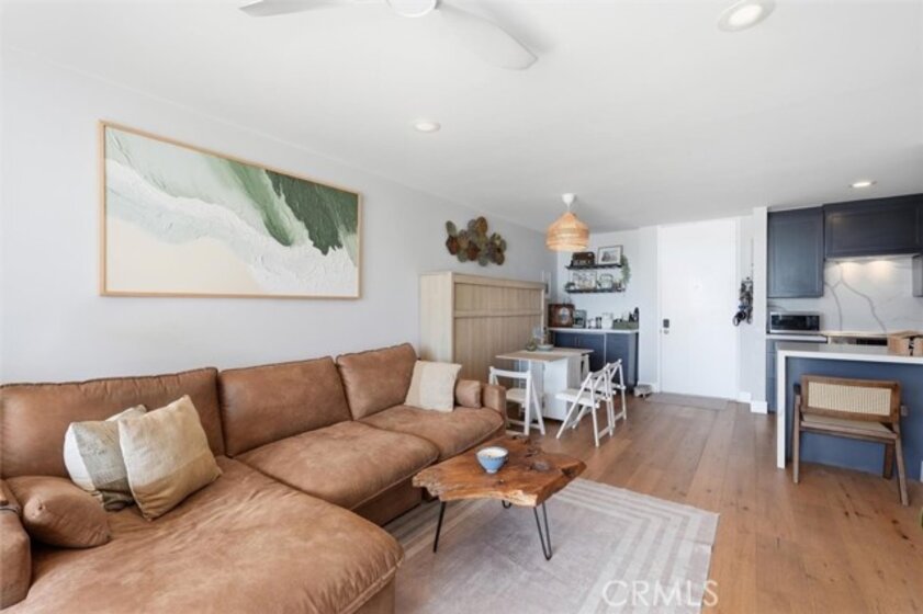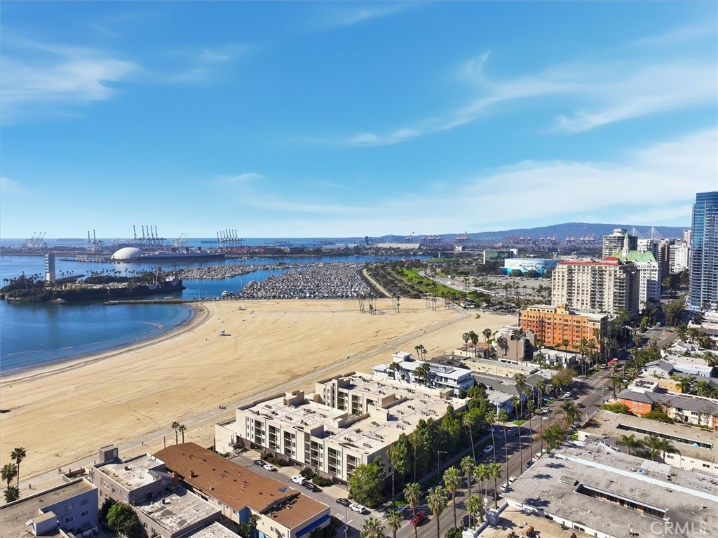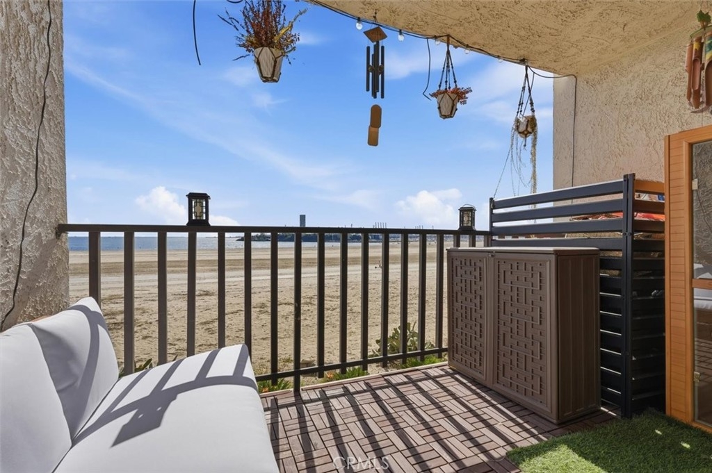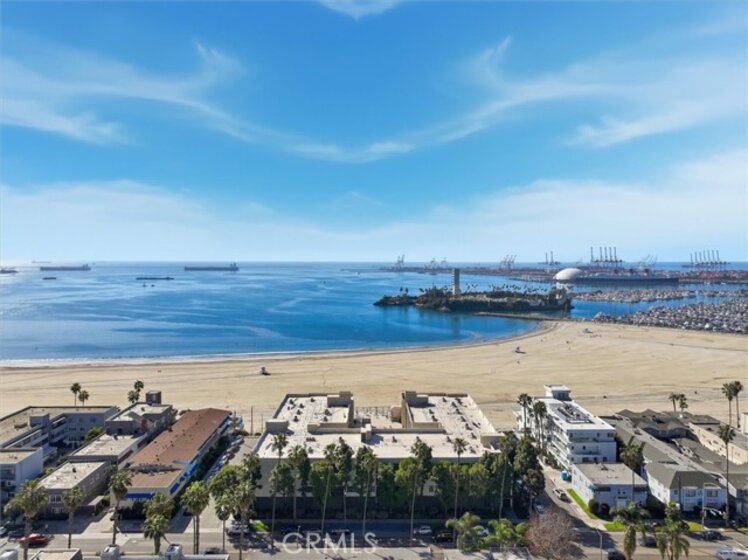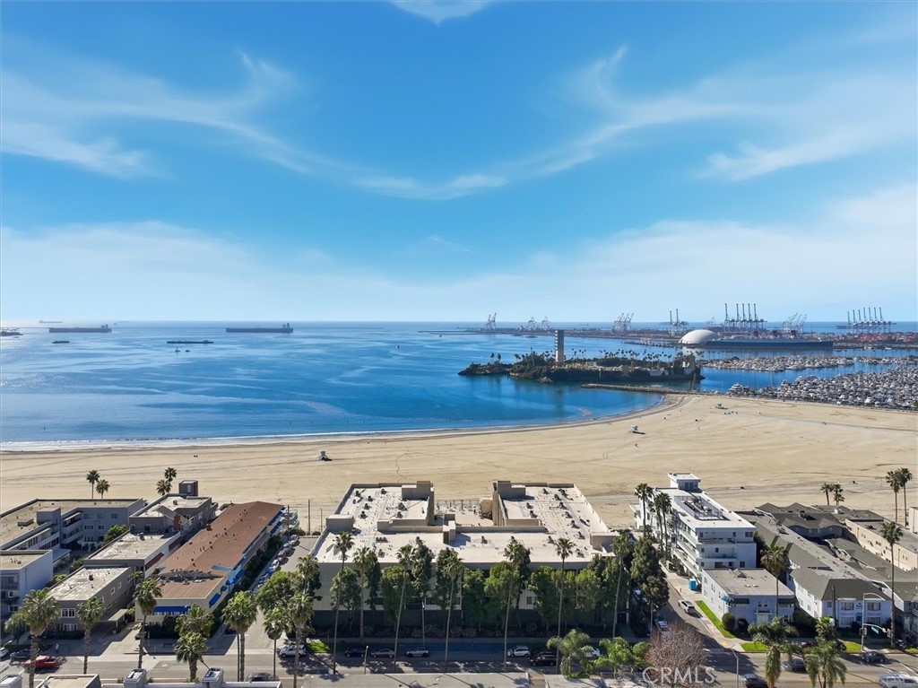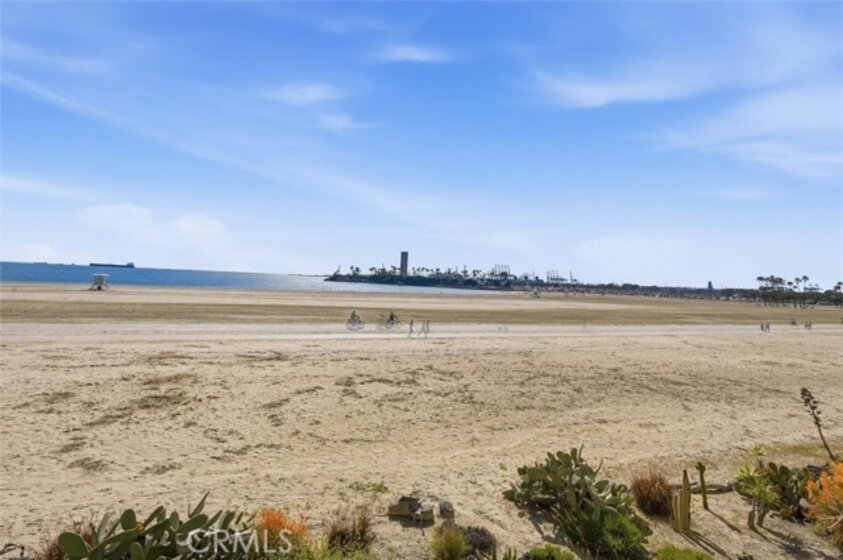 This extensively renovated one-bedroom, one-bath residence is positioned directly above the sand at Alamitos Beach, offering unobstructed southern ocean and white-water views from nearly every room. Completed in 2020 with a full down-to-the-studs renovation, the home reflects a cohesive, high-quality design throughout. Engineered hardwood flooring, recessed lighting with dimmers, upgraded baseboards, and modern interior doors create a clean architectural finish. The kitchen features custom solid wood cabinetry, Bosch appliances, and thoughtful storage, opening seamlessly to the main living space oriented toward the water. A generously sized private balcony extends the living area outdoors, providing a comfortable setting for both quiet mornings and evening sunsets. The ocean-facing bedroom is complemented by a custom walk-in closet with integrated storage and built-in seating. The bathroom offers a spa-caliber feel with a hardwood floating vanity, dual sinks, marble tile, Moen fixtures, and a Brizo waterfall shower. A mounted Smart TV adds a subtle but elevated touch. Additional upgrades include a built-in dry bar with wine refrigeration, Nest thermostat, new HVAC system, and secure ground-level parking with dedicated storage. Residents enjoy resort-style amenities including an ocean-view pool, expansive patio with BBQ areas, fitness center with locker rooms and spa, community room, bike storage, and secure direct beach access. Ideally located near waterfront paths, dining, entertainment, and Rosie’s Dog Beach, this home delivers a refined coastal lifestyle with everyday convenience.