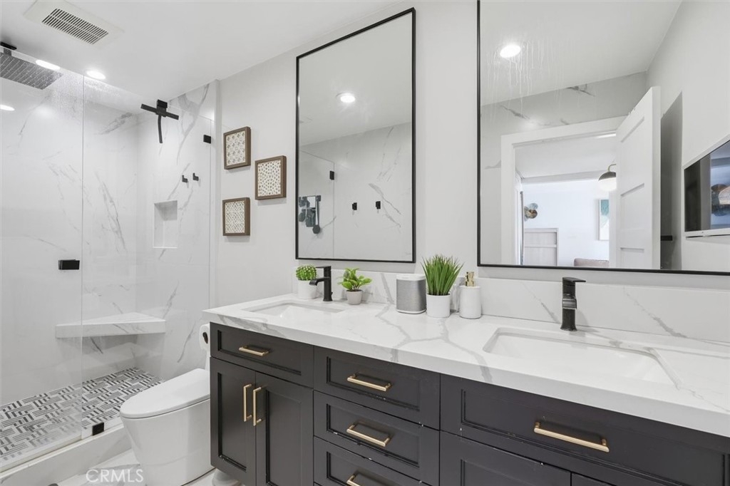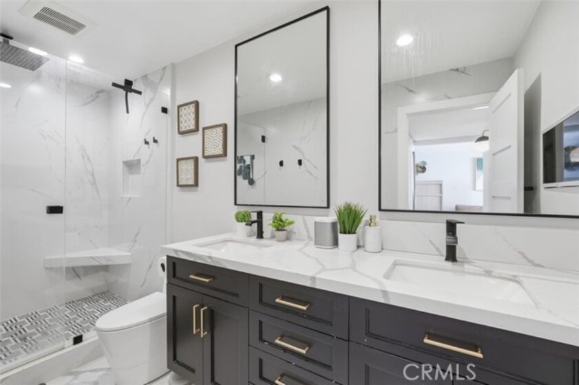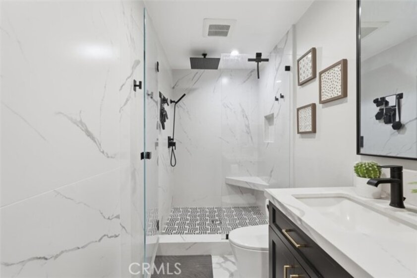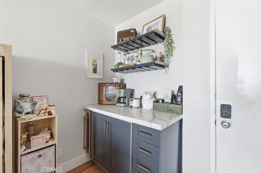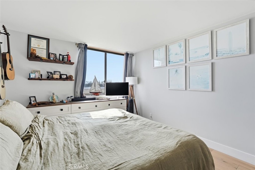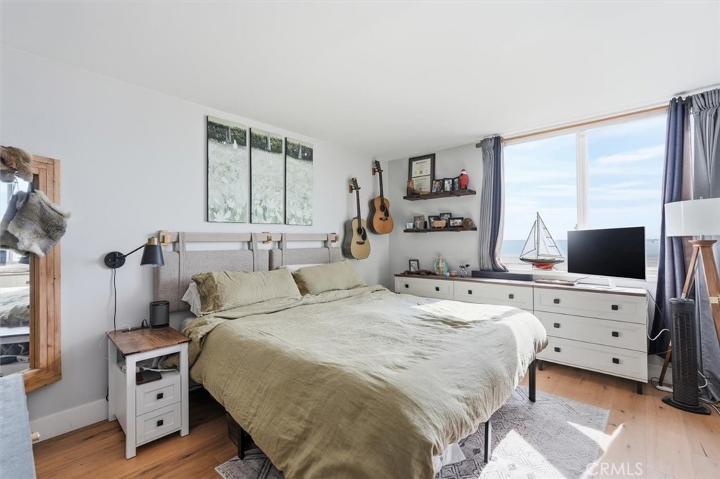 This extensively renovated one-bedroom, one-bath residence is positioned directly above the sand at Alamitos Beach, offering unobstructed southern ocean and white-water views from nearly every room. Completed in 2020 with a full down-to-the-studs renovation, the home reflects a cohesive, high-quality design throughout. Engineered hardwood flooring, recessed lighting with dimmers, upgraded baseboards, and modern interior doors create a clean architectural finish. The kitchen features custom solid wood cabinetry, Bosch appliances, and thoughtful storage, opening seamlessly to the main living space oriented toward the water. A generously sized private balcony extends the living area outdoors, providing a comfortable setting for both quiet mornings and evening sunsets. The ocean-facing bedroom is complemented by a custom walk-in closet with integrated storage and built-in seating. The bathroom offers a spa-caliber feel with a hardwood floating vanity, dual sinks, marble tile, Moen fixtures, and a Brizo waterfall shower. A mounted Smart TV adds a subtle but elevated touch. Additional upgrades include a built-in dry bar with wine refrigeration, Nest thermostat, new HVAC system, and secure ground-level parking with dedicated storage. Residents enjoy resort-style amenities including an ocean-view pool, expansive patio with BBQ areas, fitness center with locker rooms and spa, community room, bike storage, and secure direct beach access. Ideally located near waterfront paths, dining, entertainment, and Rosie’s Dog Beach, this home delivers a refined coastal lifestyle with everyday convenience.